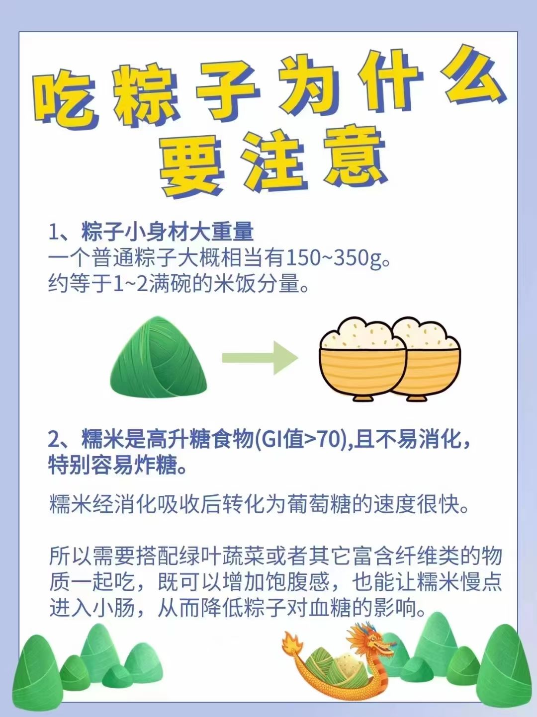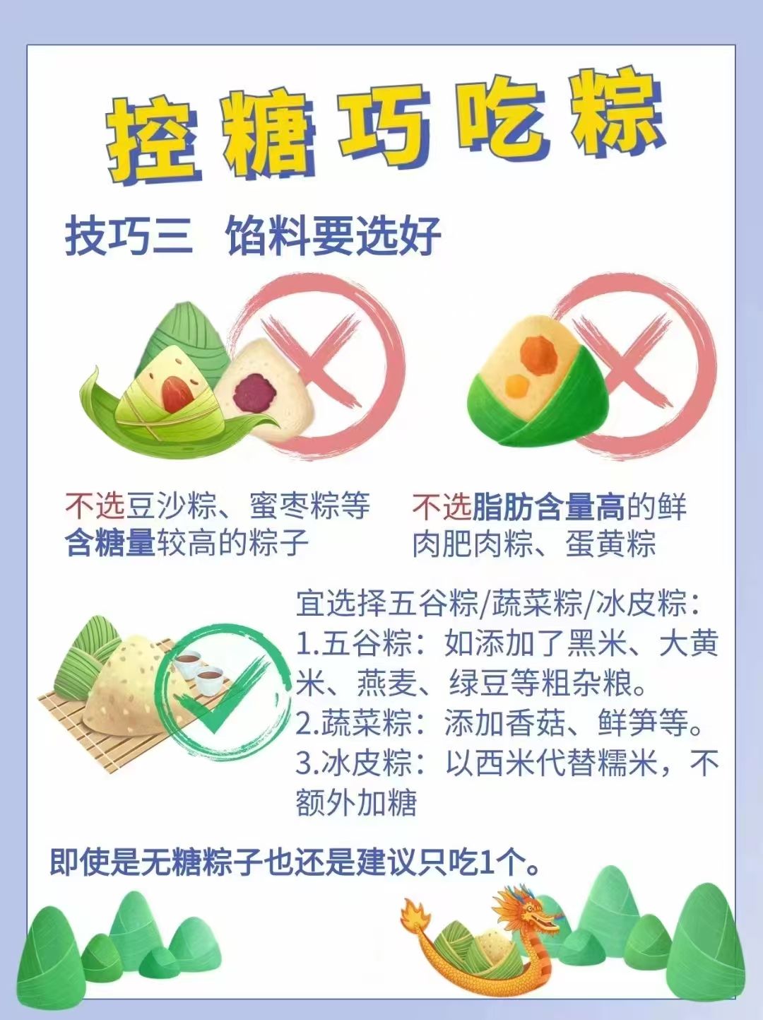 3,吃了粽子就不要再吃主食。