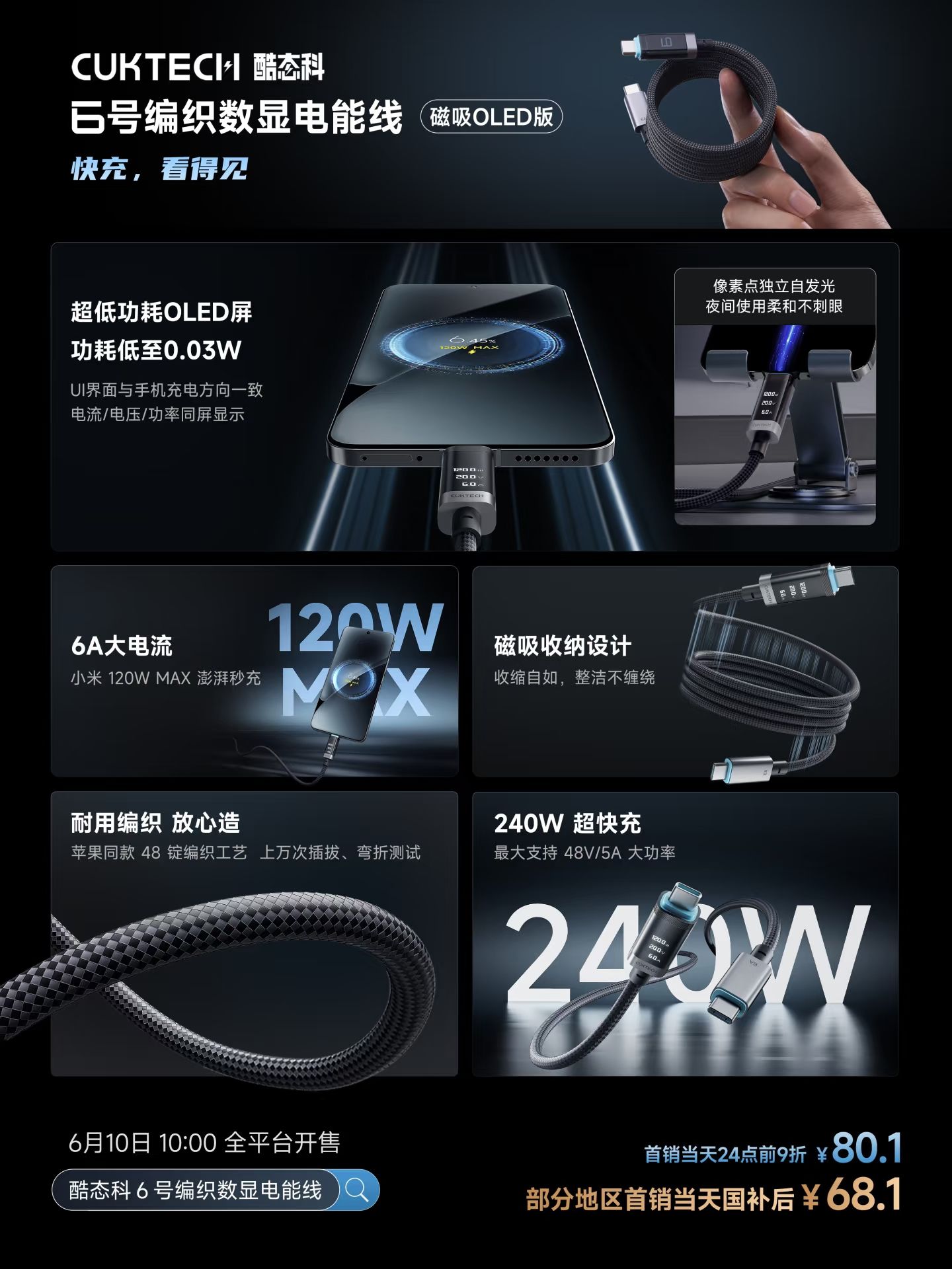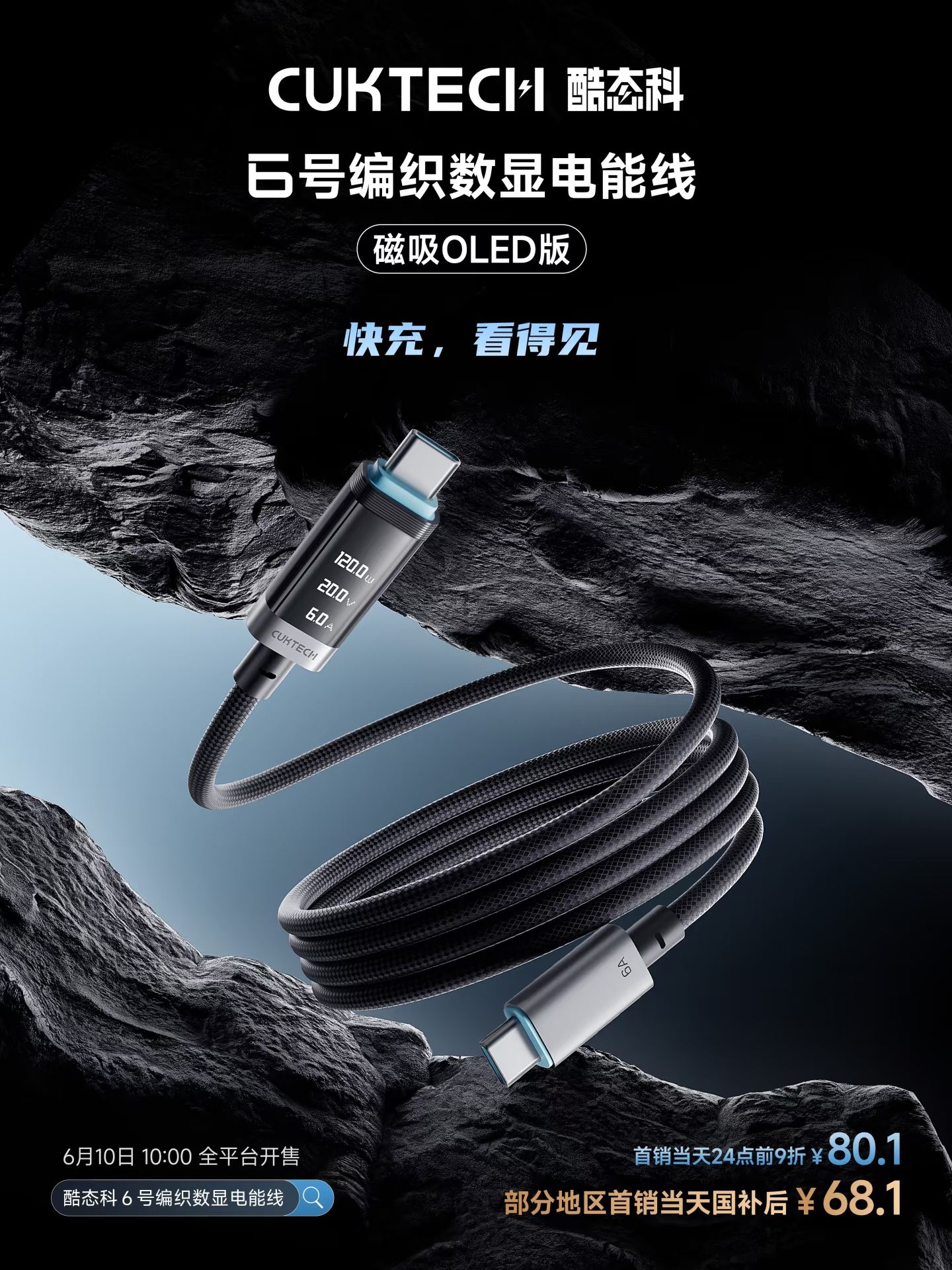 CUKTECH酷态科6号编织数显电能线「磁吸OLED版」