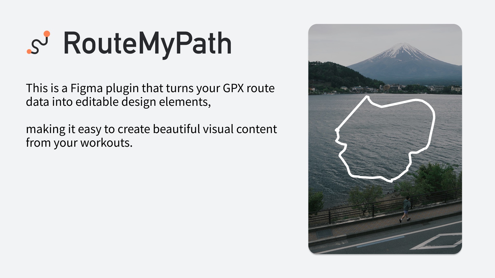 于是开了个cursor pro,跟AI合作了一下午搓出了个figma插件,核心能力是通过解析用户上传的GPX文件,将其转化为可编辑的figma vector轨迹元素。这样我就能在figma中肆意修改轨迹的颜色、大小、特征,再加上配速、距离信息来制作自己的运动打卡图了。类似图四我在河口湖下跑步这种。