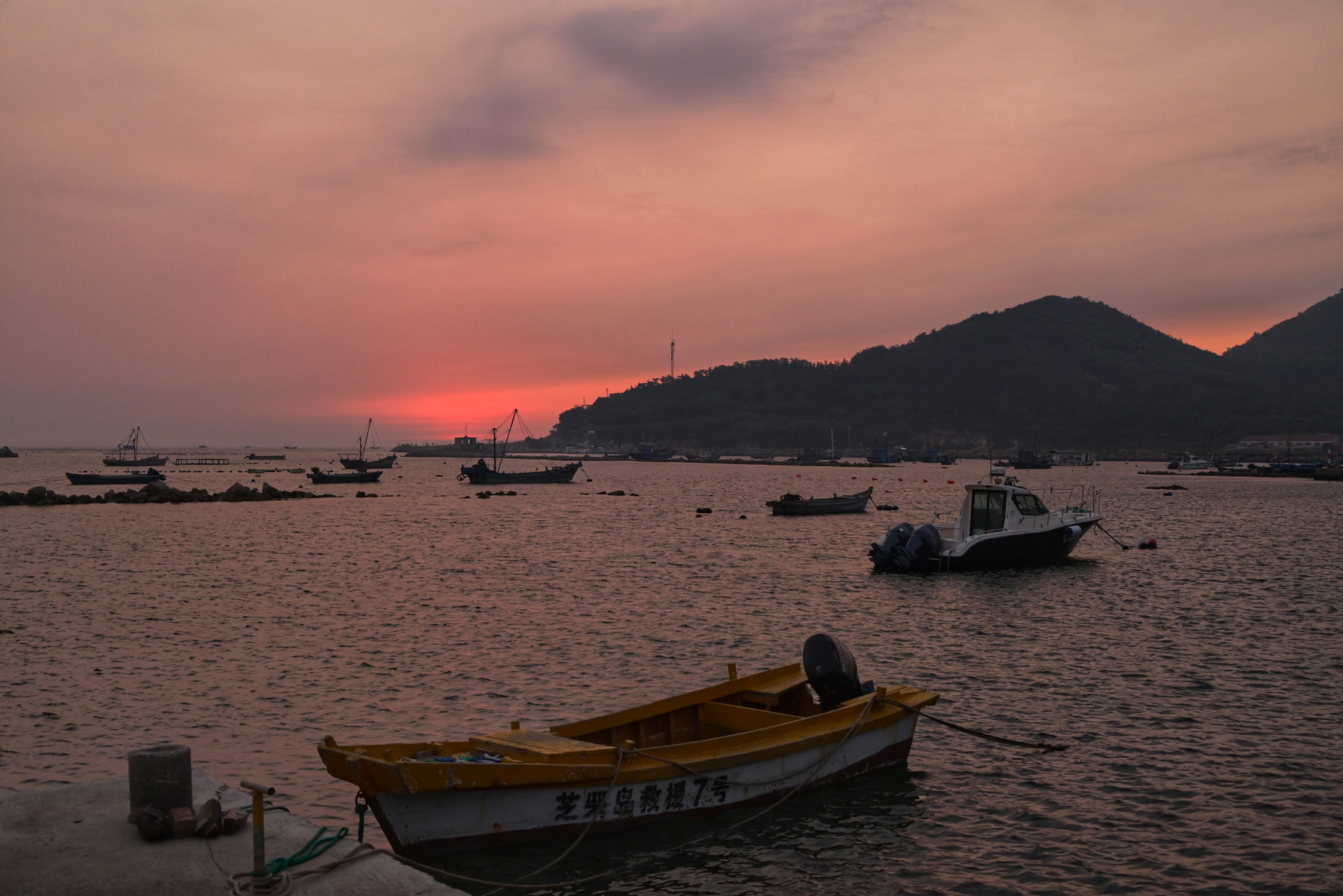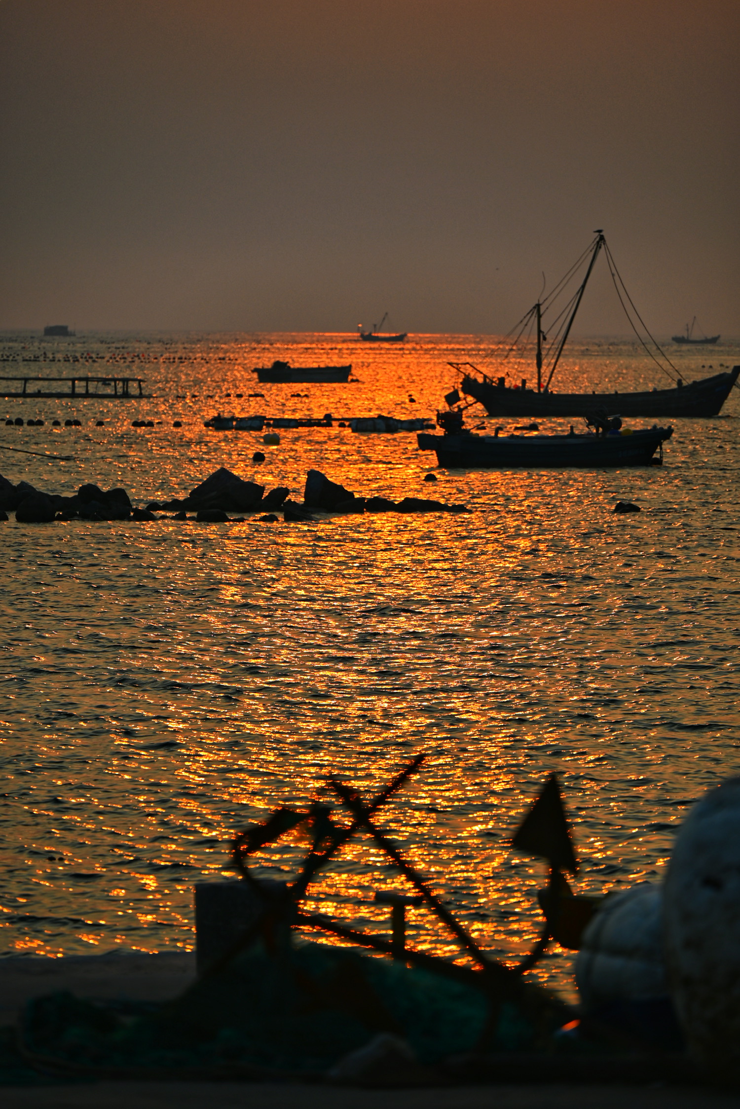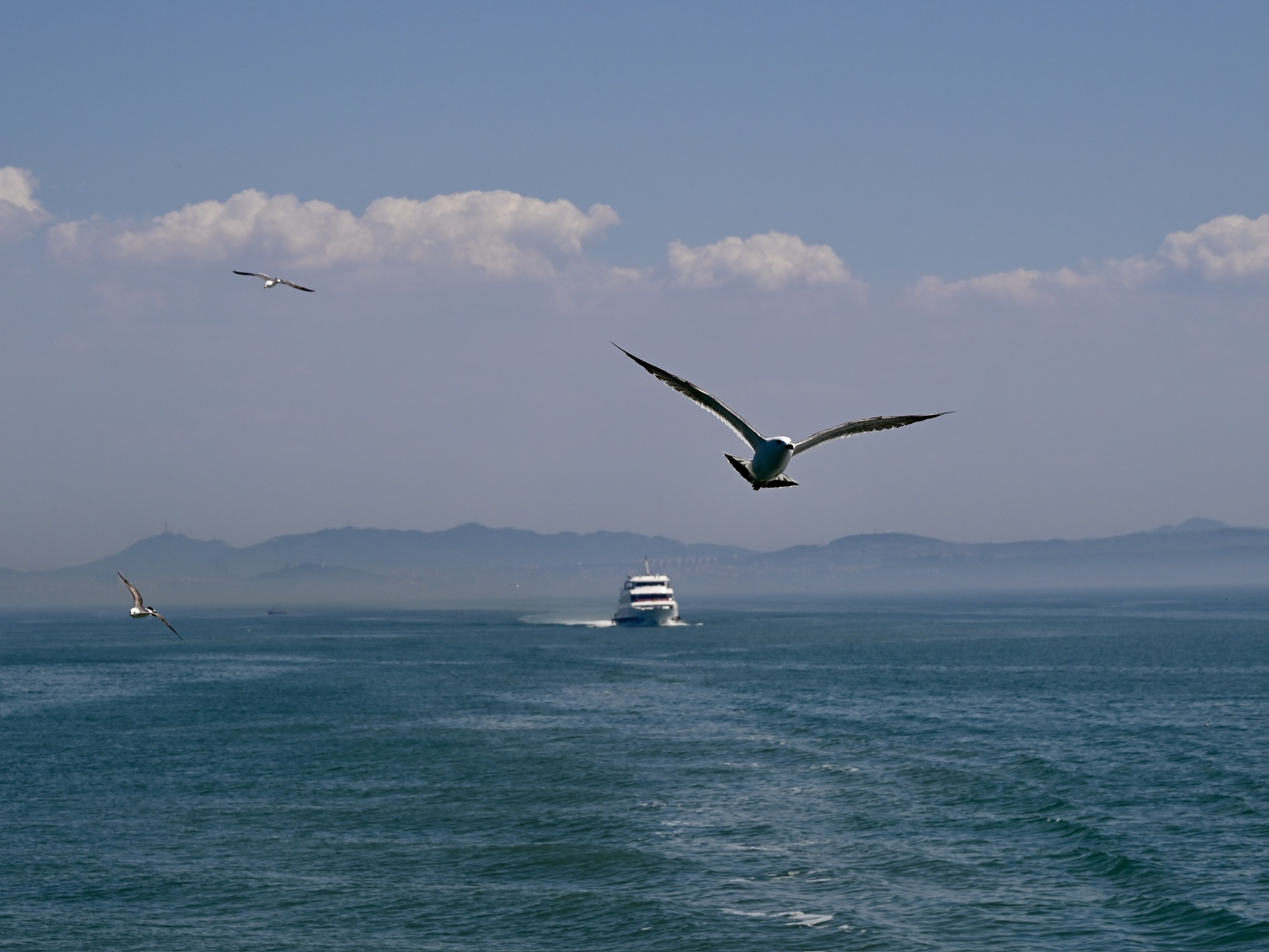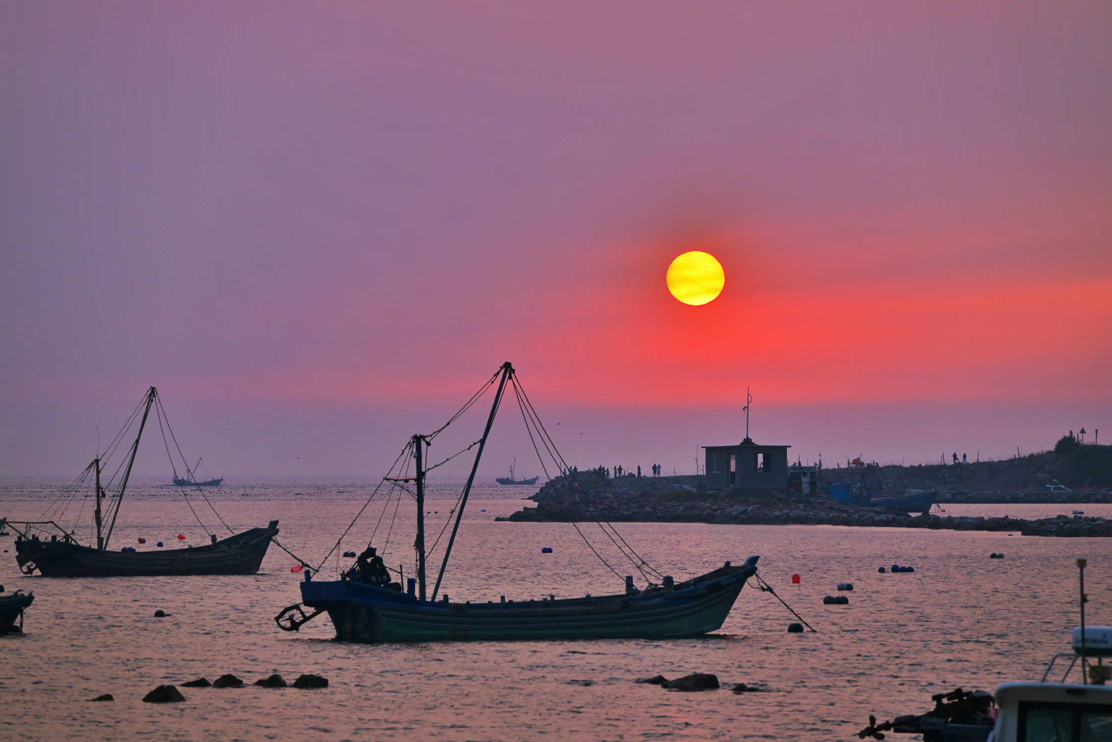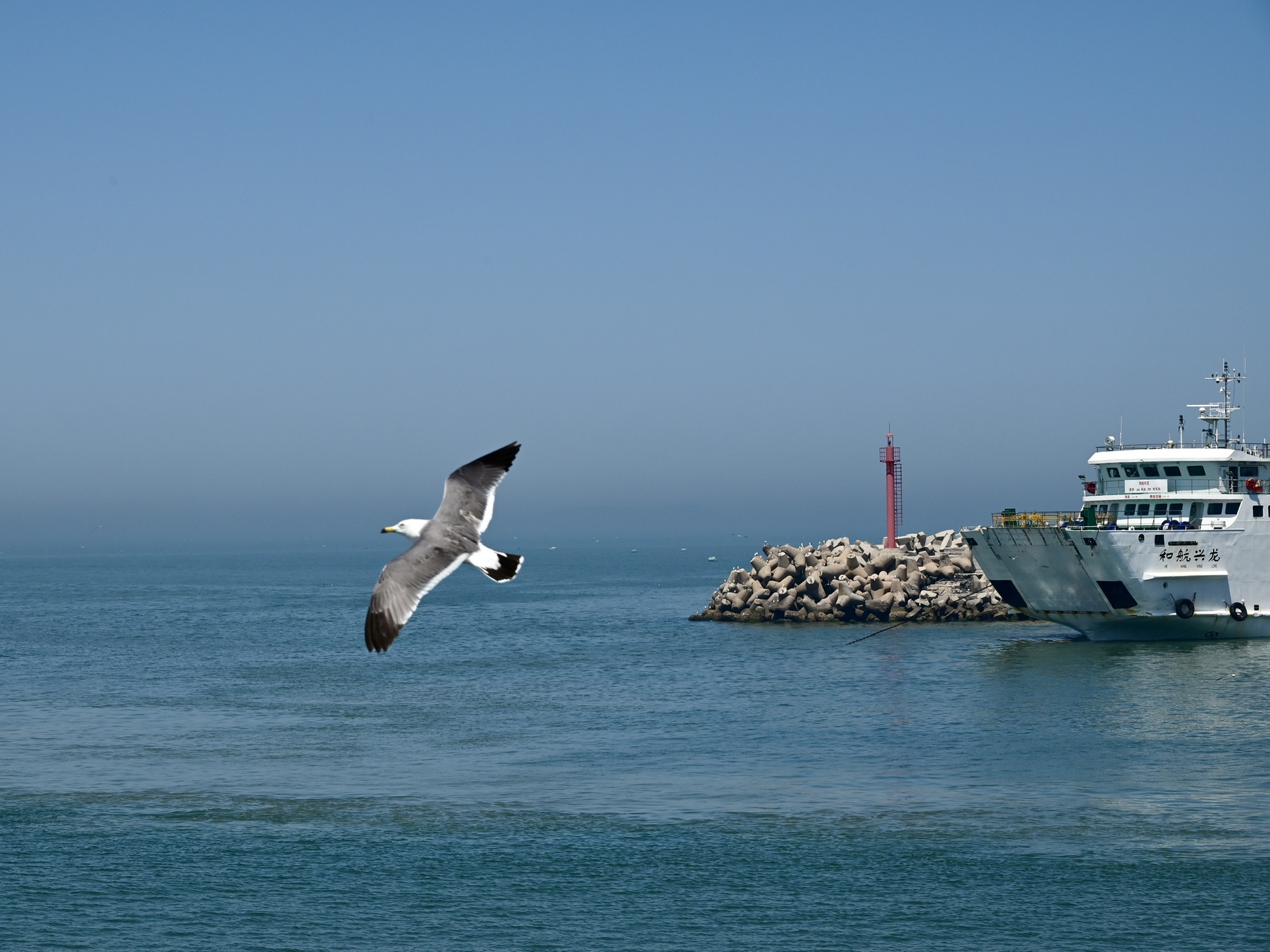 烟台的绝美晚霞和极具镜头感的海鸥