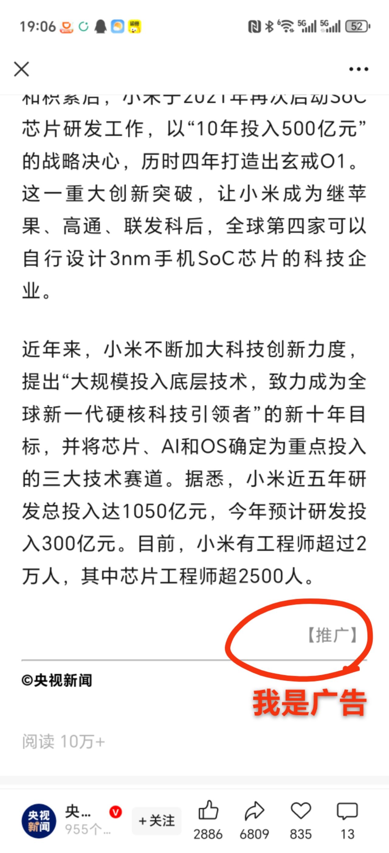 上次小米在央视新闻的微博和公众号打广告,雷老板微博发出来让米猴以为是央视背书,白高潮一场;