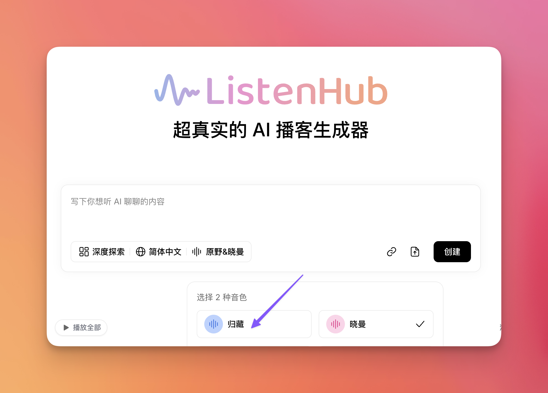 ListenHub 的付费会员现在可以定制音色了。
