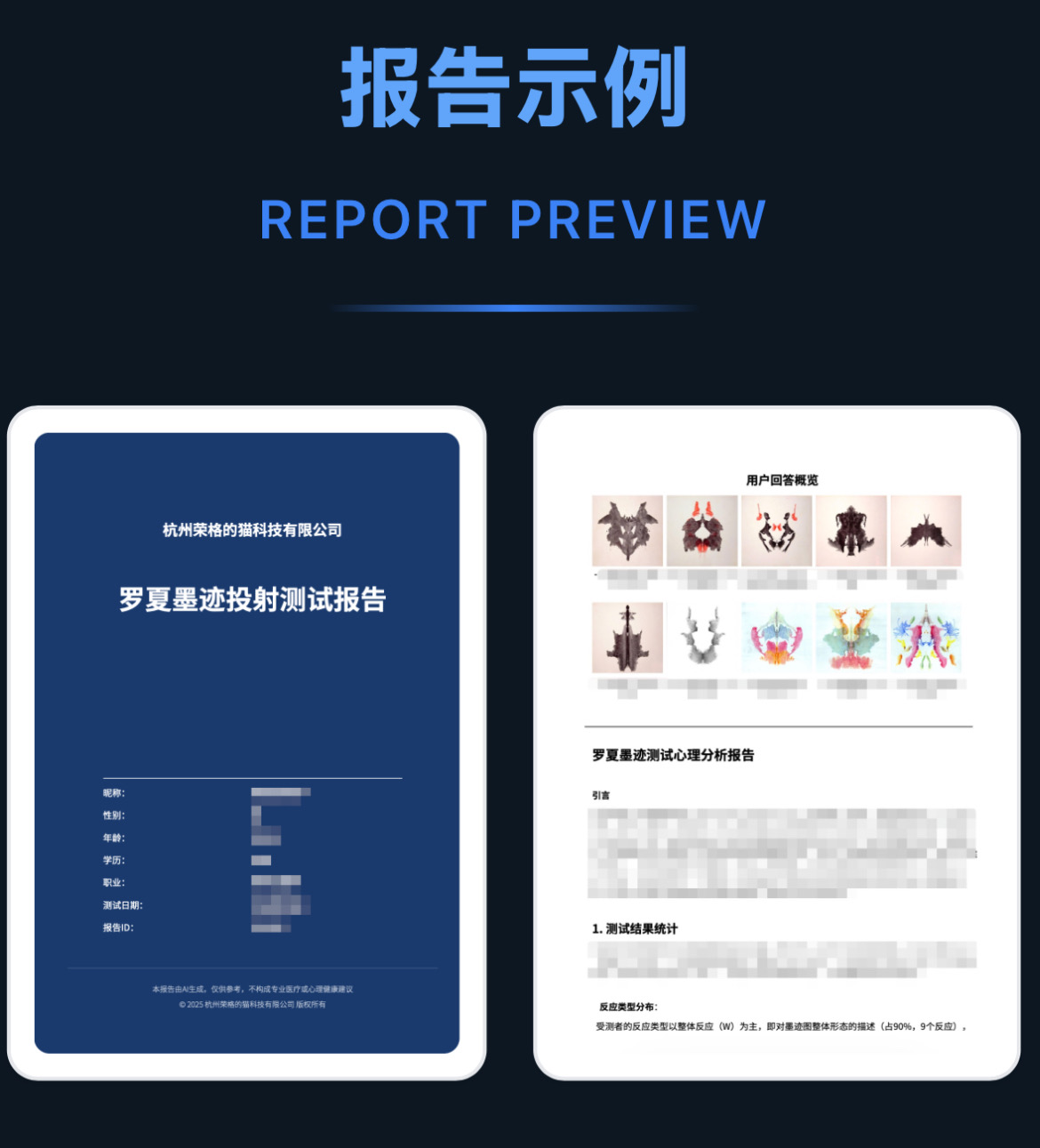 罗夏墨迹是一个经典的投射测试,通过模糊不清的墨迹来分析被试的潜意识。到现在为止已有百年历史。