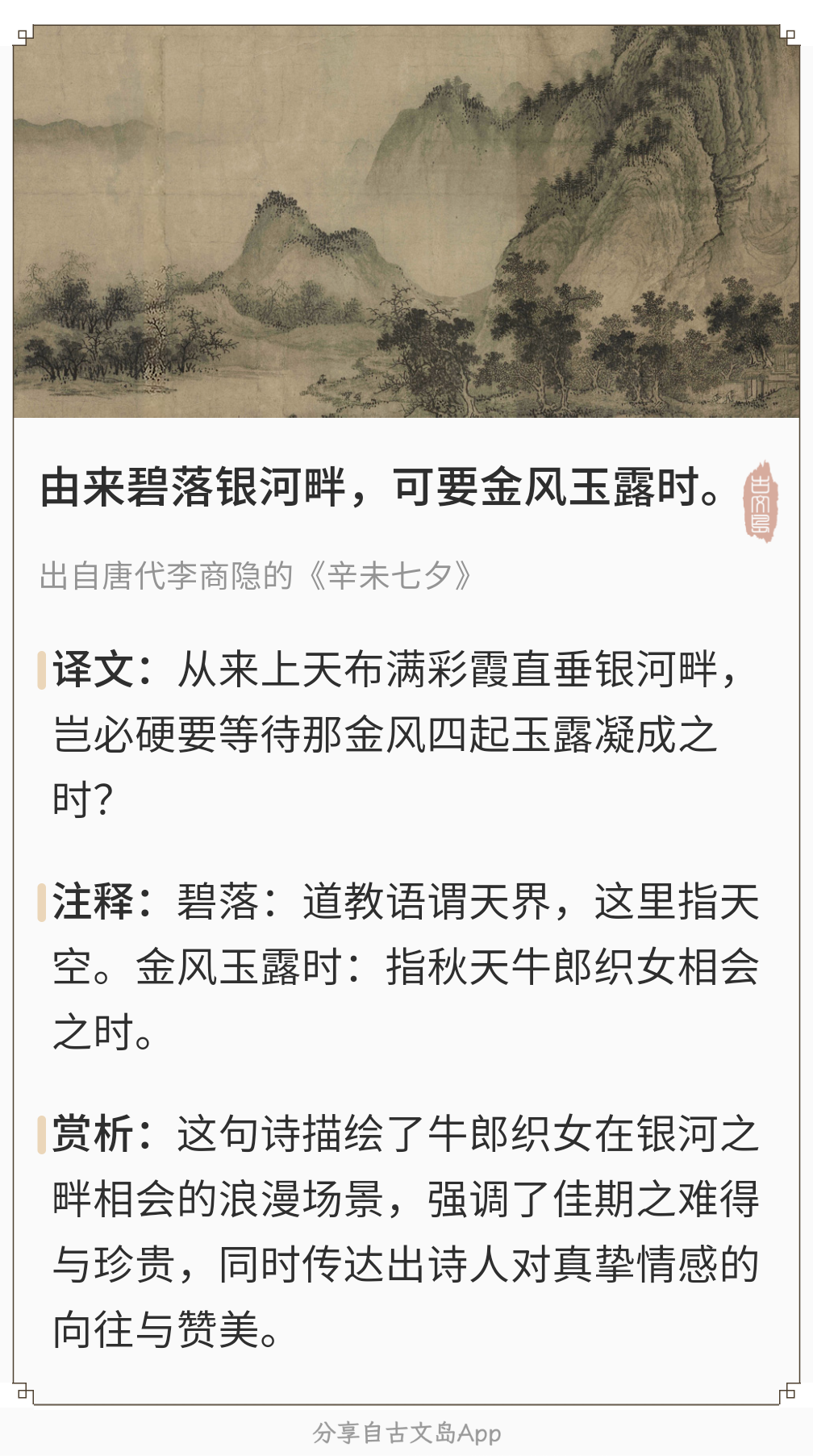 由来碧落银河畔,可要金风玉露时。