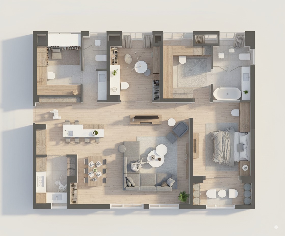 从平面图生成 3D 渲染建筑俯视图,然后再生成指定视角的渲染图