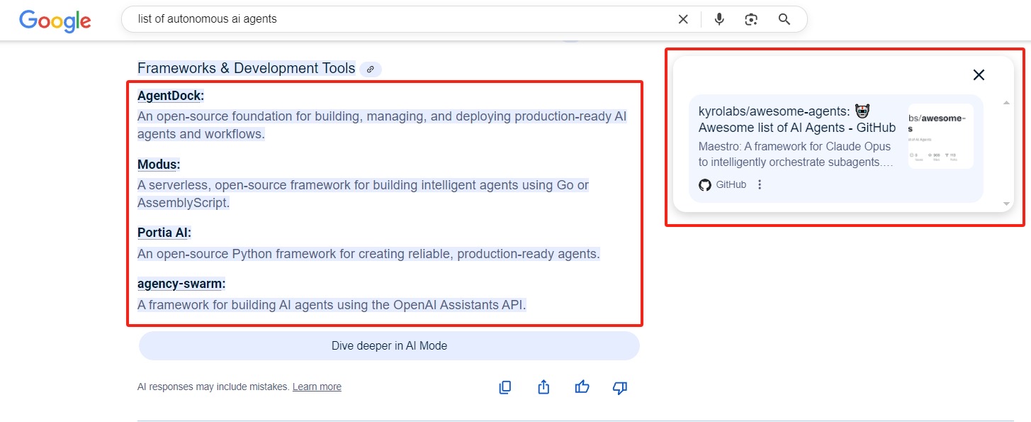 聪明人不止这一个,AI Overview中还引用了另外一个Github页面(见图二),来自Kyrolabs(一个AI Agent for App Building & Deploying)