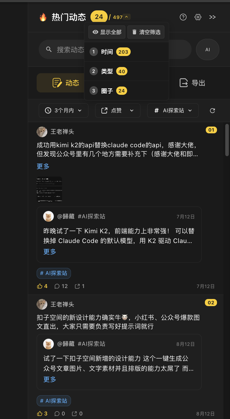 即刻网页端侧边栏插件进展分享