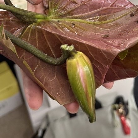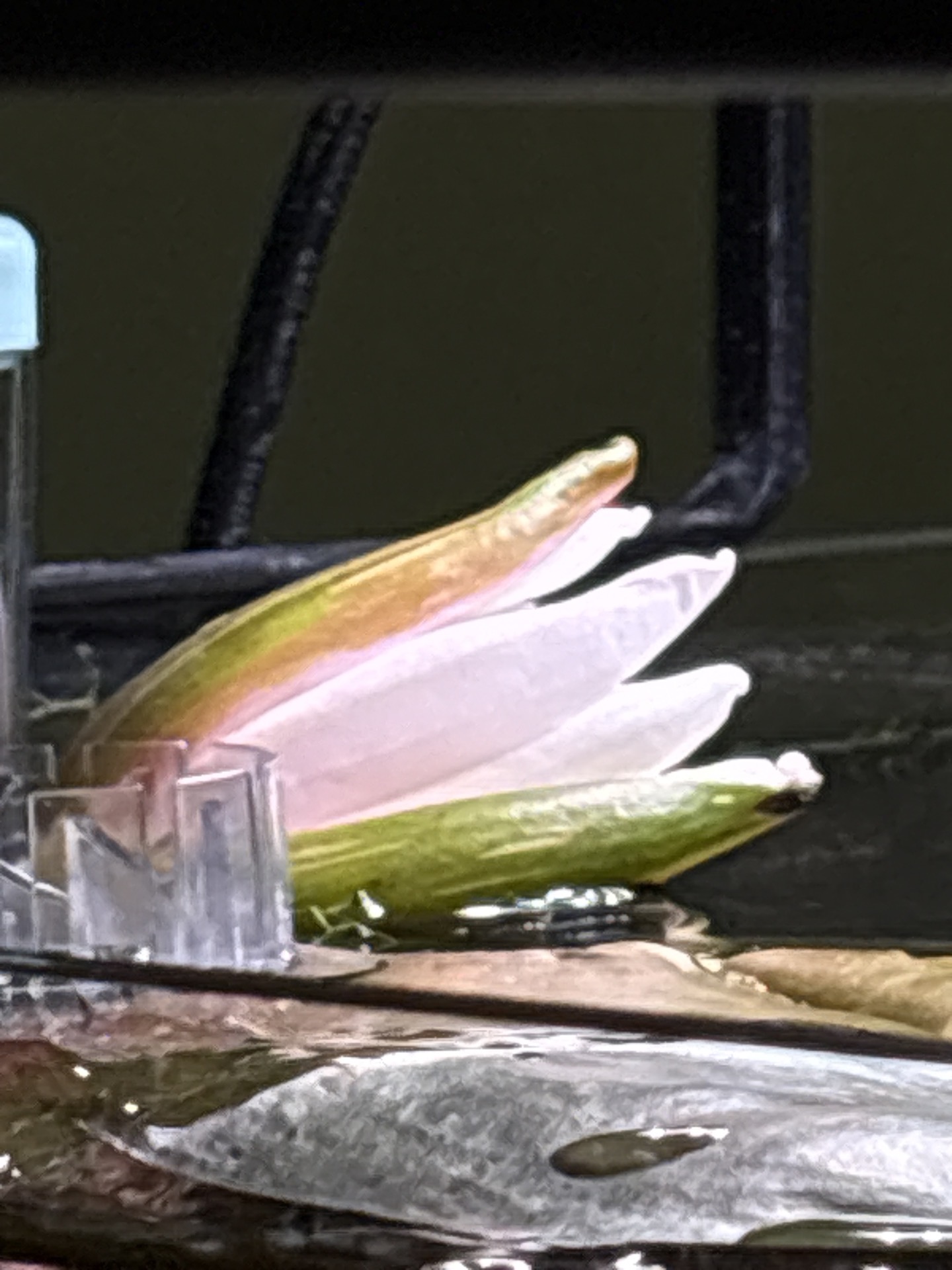 没想到最大的花苞运输过程中折断了,本来想着那得处理掉这个花苞免得腐烂坏水,但是一念之差想着也许有转机呢没想到今早这颗和根茎近乎完全断开的花苞竟然还是一点点努力开花了,惊喜感动🥹