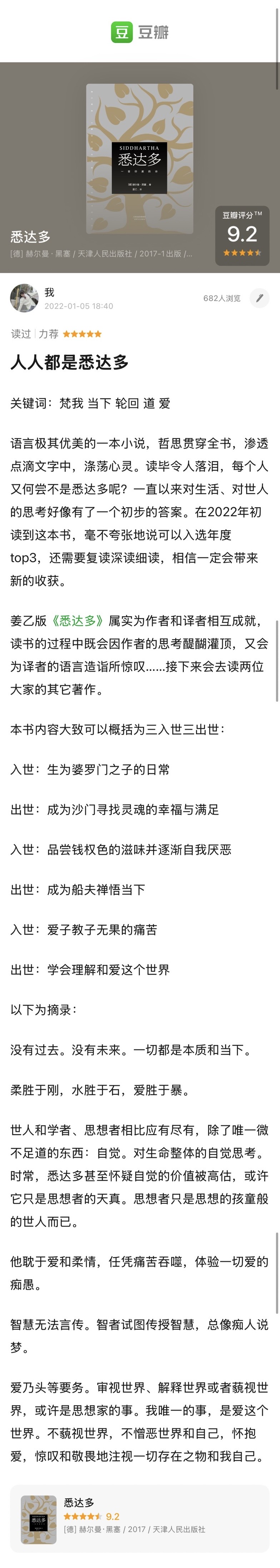 《悉达多》永远是我的人生top3书籍 常读常新