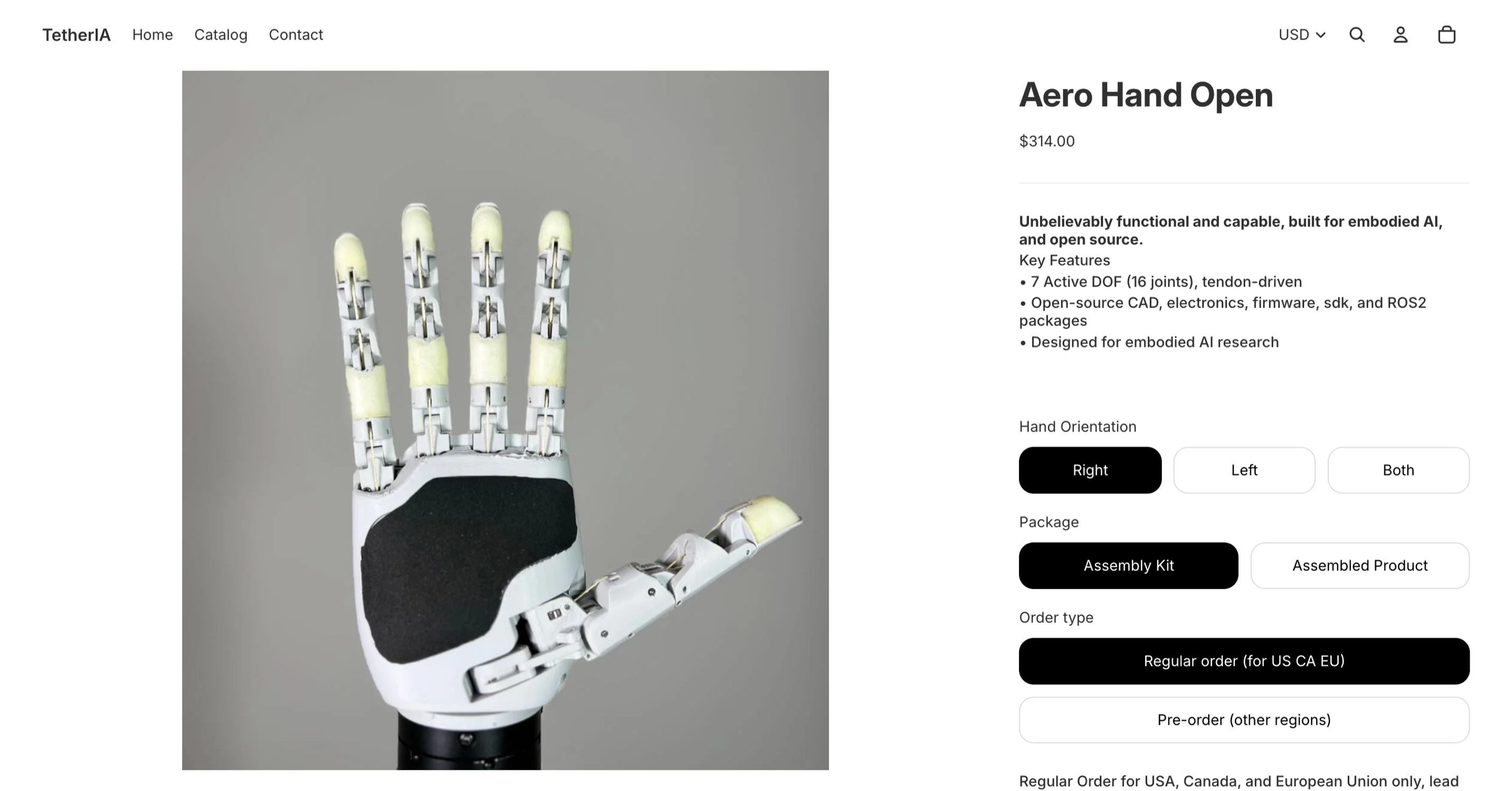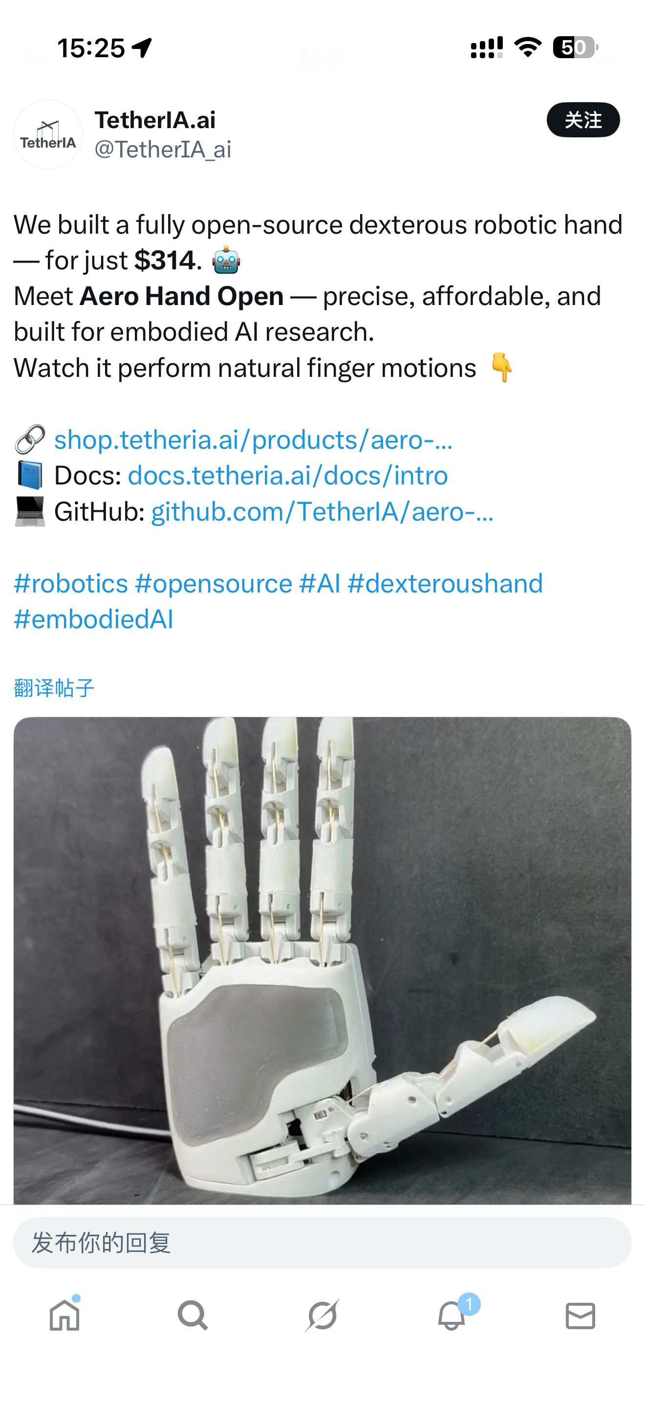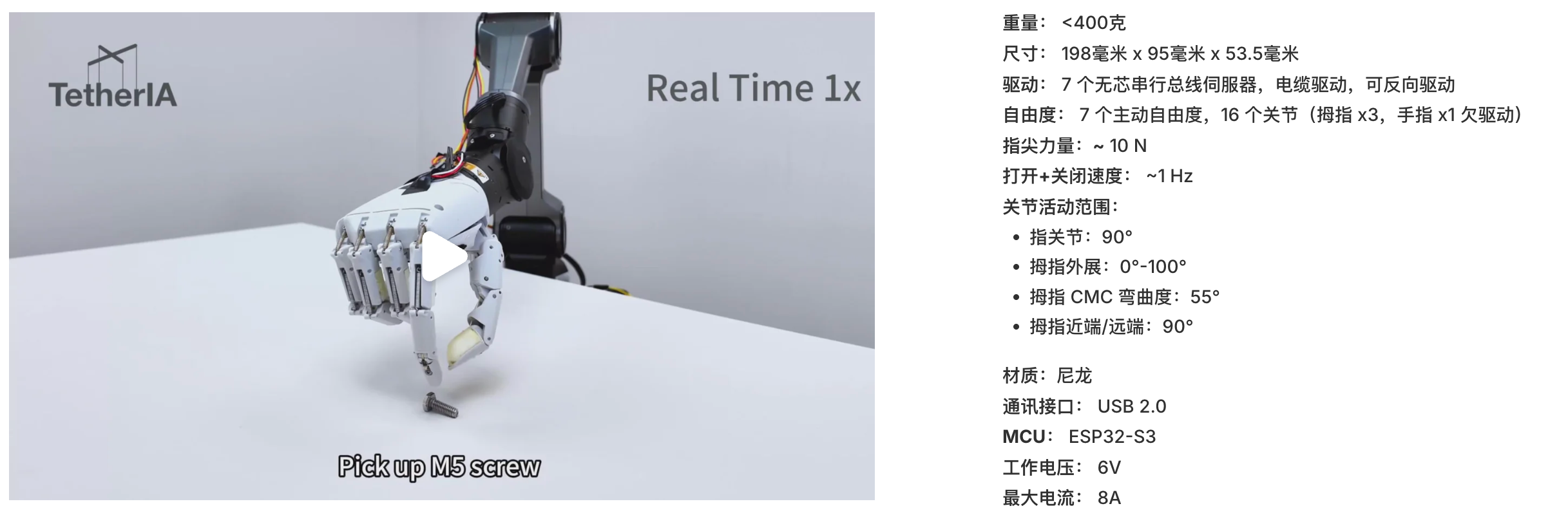 ✅开源版定价300美元,可立即交付【这款类人五指灵巧手拥有7个主动自由度,重量和尺寸均为业界最小,硬件层面实现模块化设计,大幅降低维护成本】