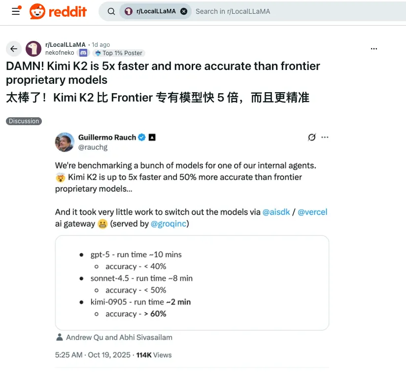 到了K2这一代,他们在保持长文本优势的基础上,把推理速度和准确率都提升了一个档次。Vercel的测试数据已经很说明问题了,但更重要的是Kimi在实际应用中展现出的稳定性。