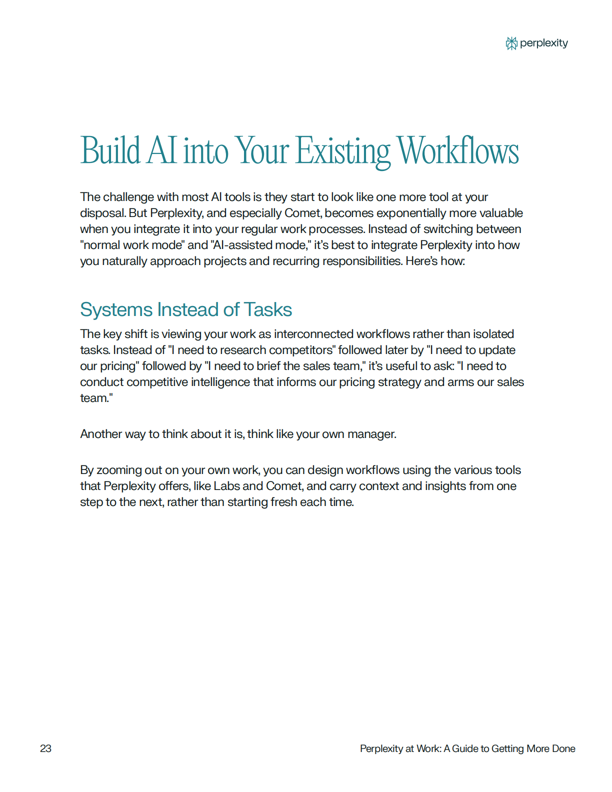 今天读到Perplexity官方发布的一本内部工作指南,分享了Perplexity内部团队如何借助AI提效。