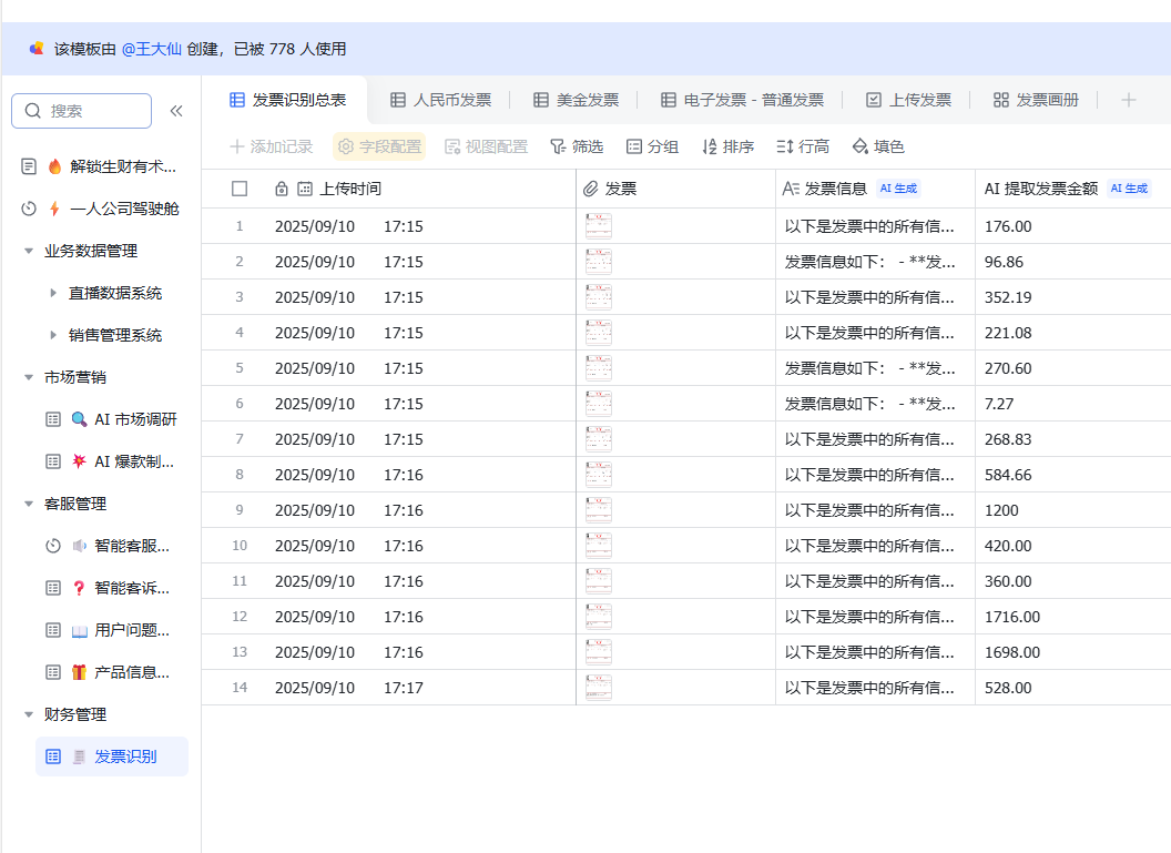 比如发票管理,发票丢进去自动提取金额和类目和主体;