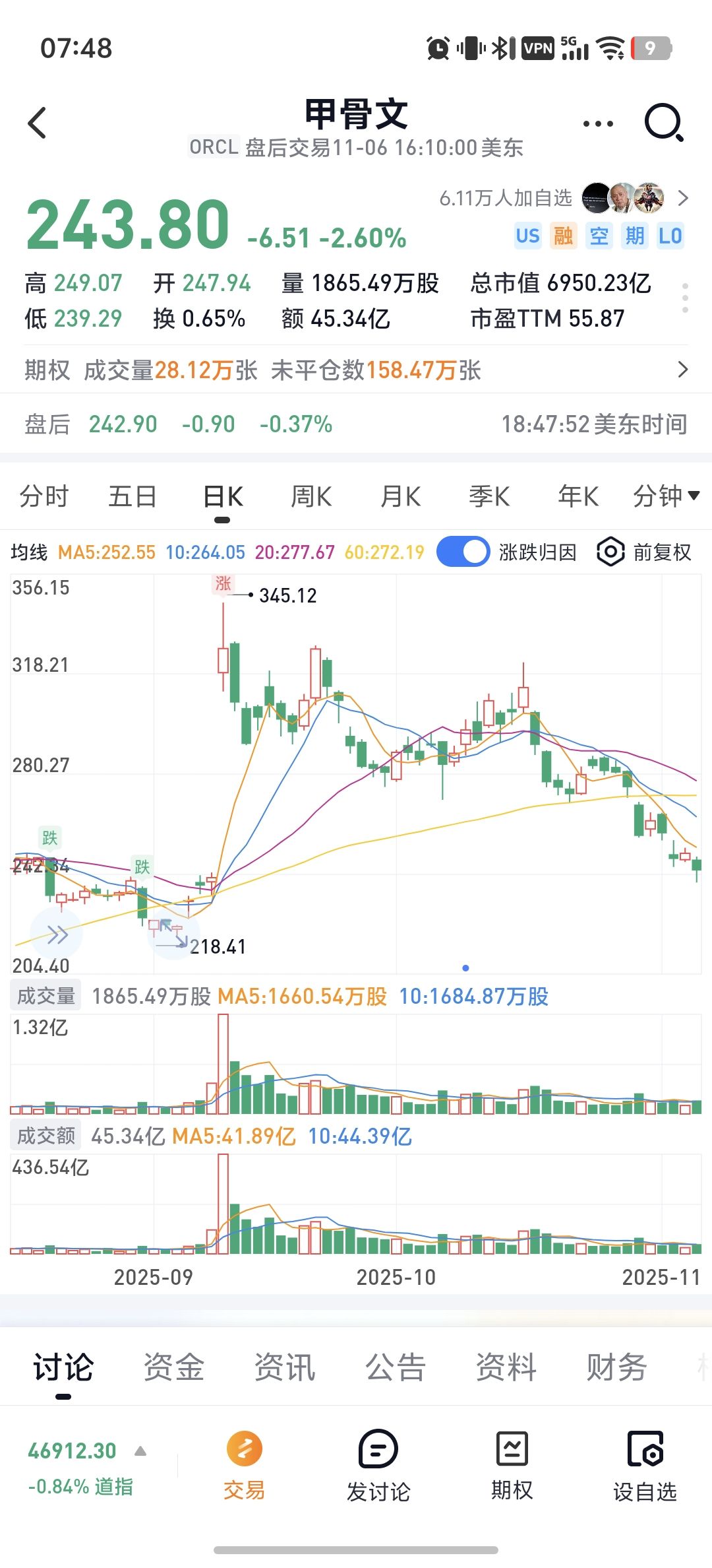 昨晚美股大跌,甲骨文的股价已经跌回和OpenAI签订五年3000亿美金云订单之前的价格……