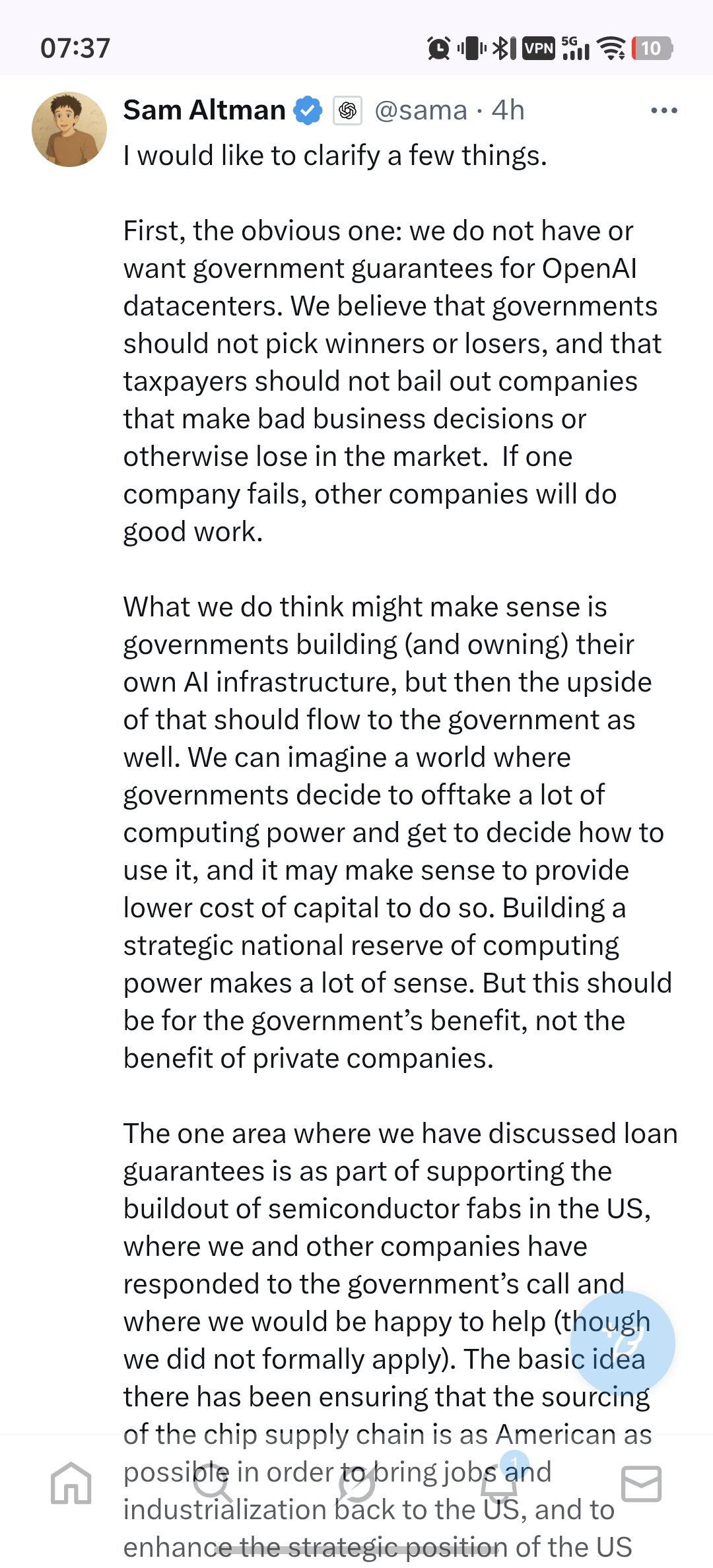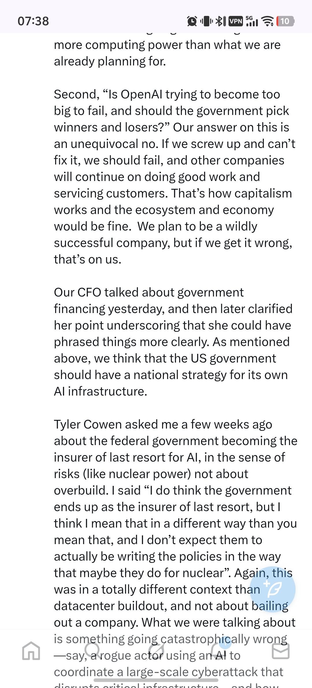 昨天OpenAI CFO在一个活动上表达希望美国政府对当前的AI算力基础设施投资提供担保,这一表述直接炸锅……
