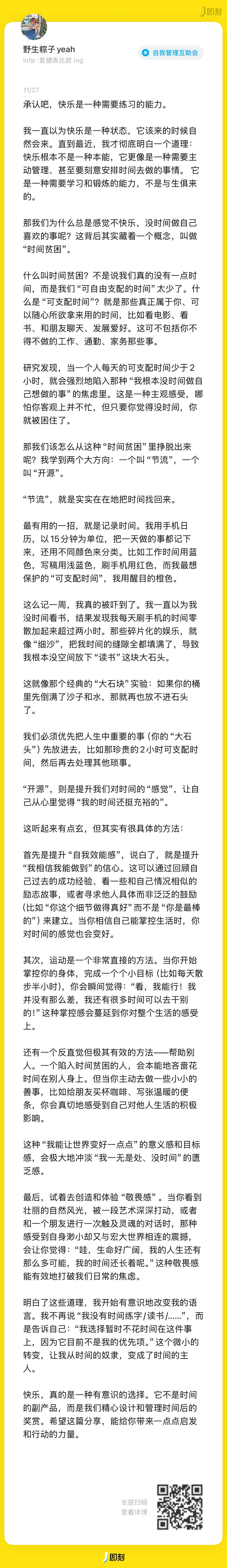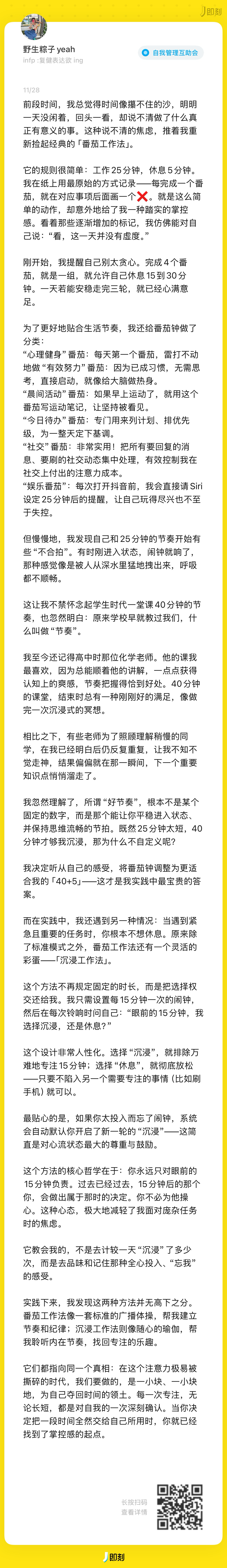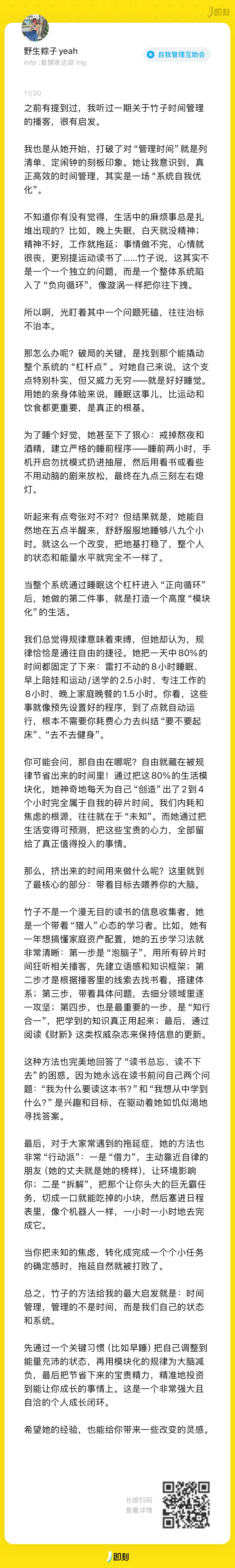 从意识到“时间贫困”的焦虑,到学会管理“注意力”分配,最终进入“遵循精力节律”的节奏。