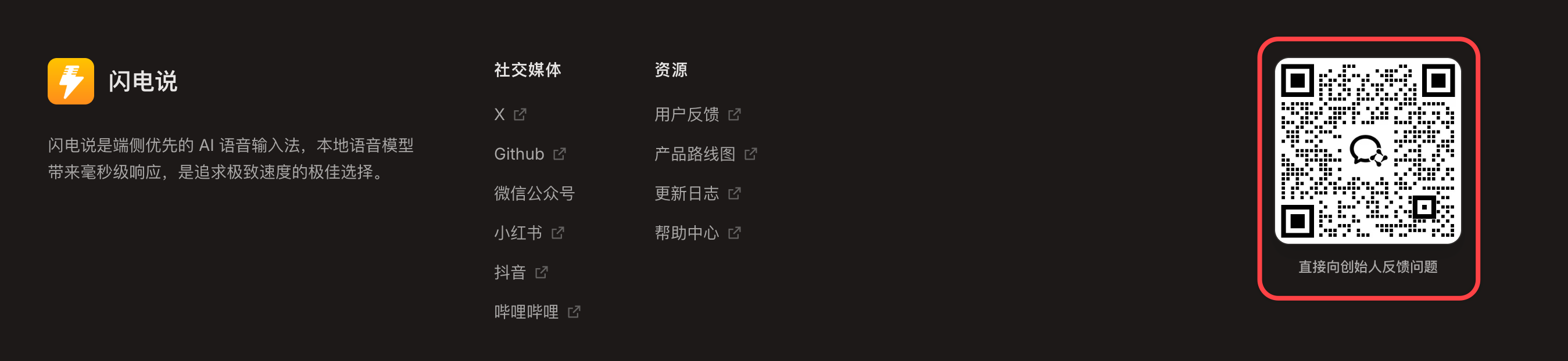 在闪电说官网想找找官方社群的入口,只看到这个“直接向创始人反馈问题”,看完感觉是直接加企微 1-1 聊天,出于社交压力就很犹豫。