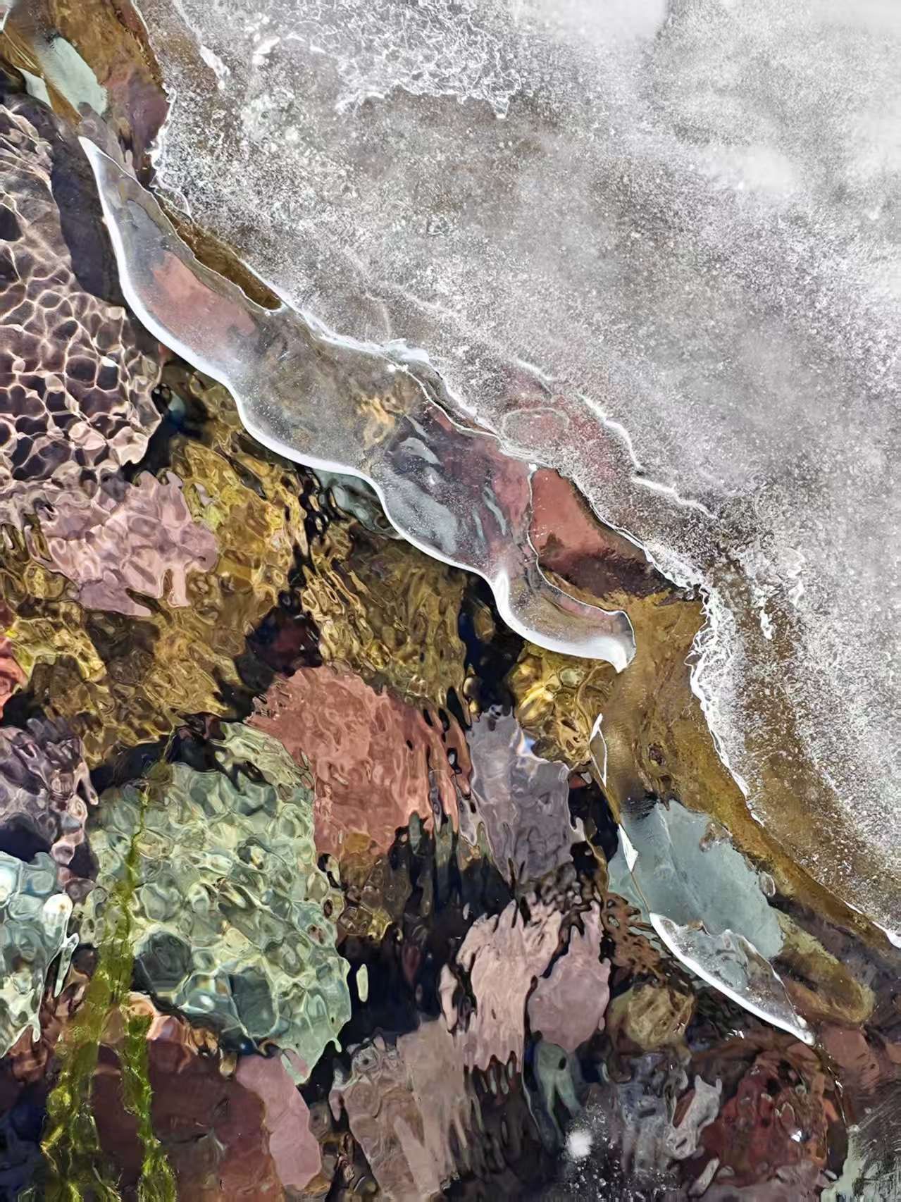 在冰川上徒步,听冰层脚下的潺潺溪流,像是山谷里的交响曲,坐在太阳下冥想感觉很不错。