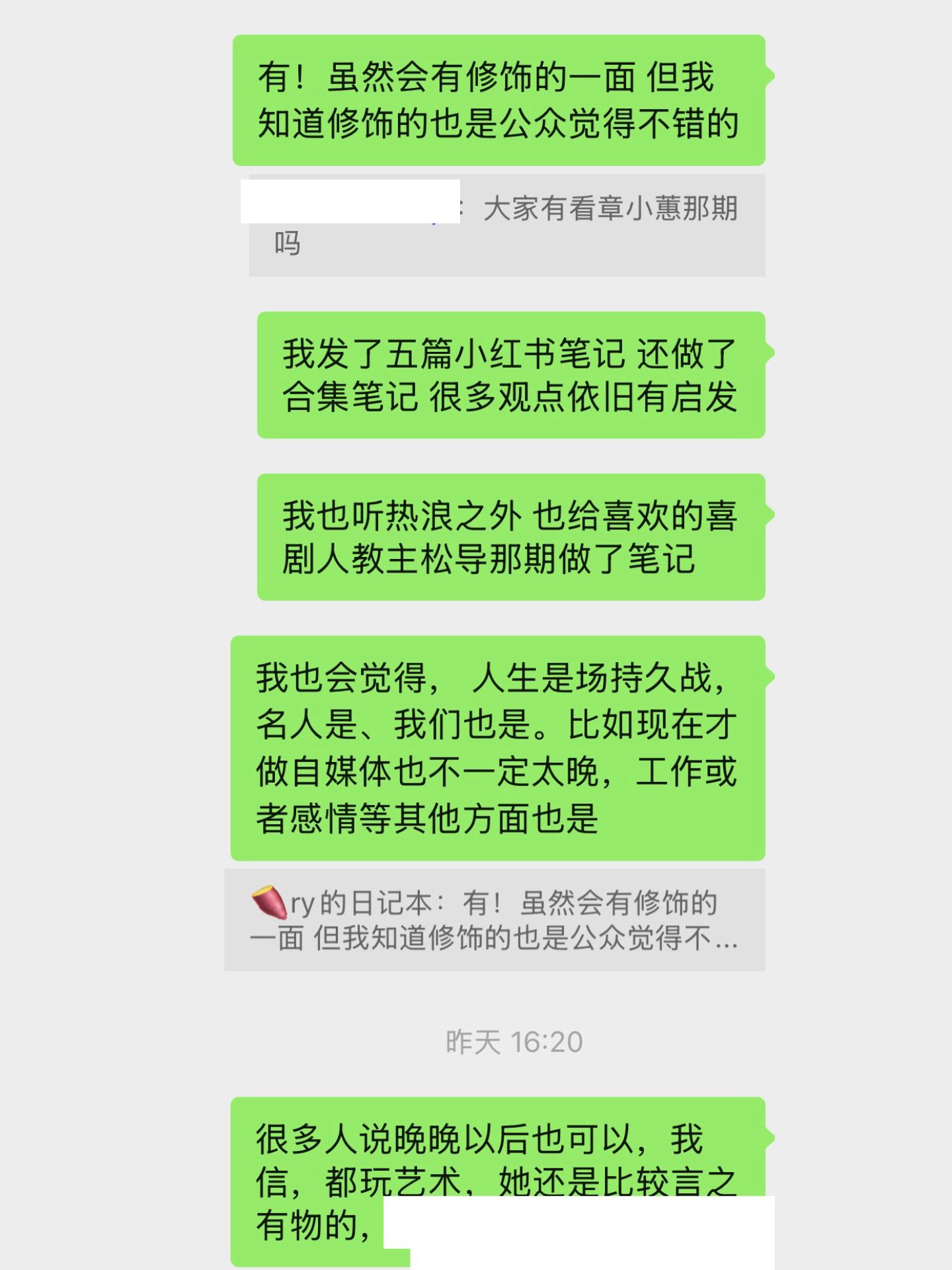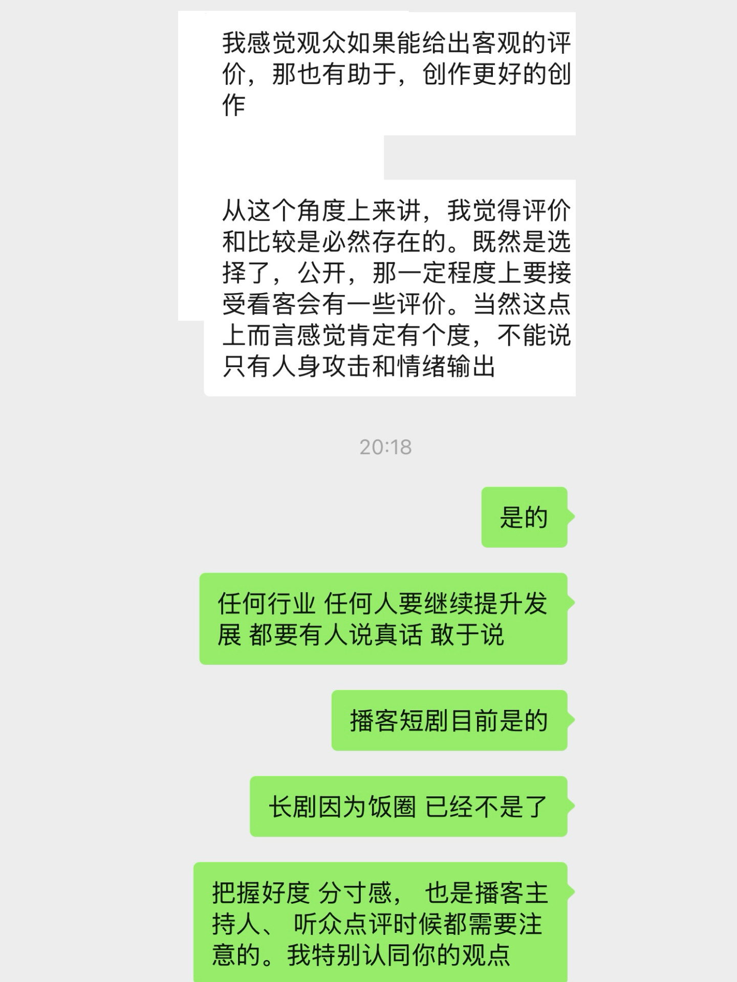 我真的超喜欢这样的深度的同频的交流,和轻松搞笑的聊天是不一样的感觉,很不错!