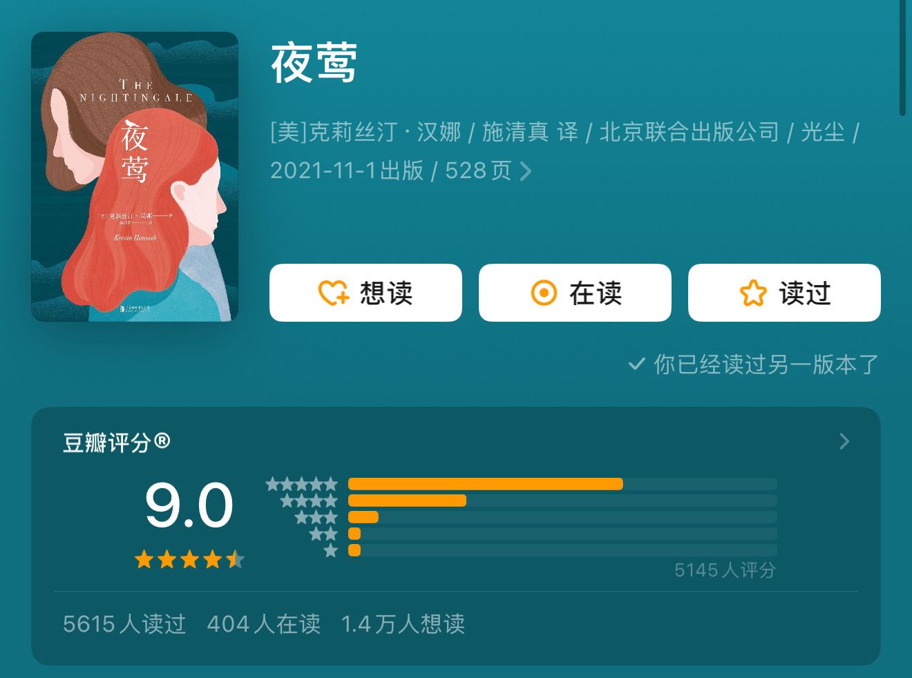 英文版资源获取不方便,我建议大家在微信读书中看此书的中文版《夜莺》。