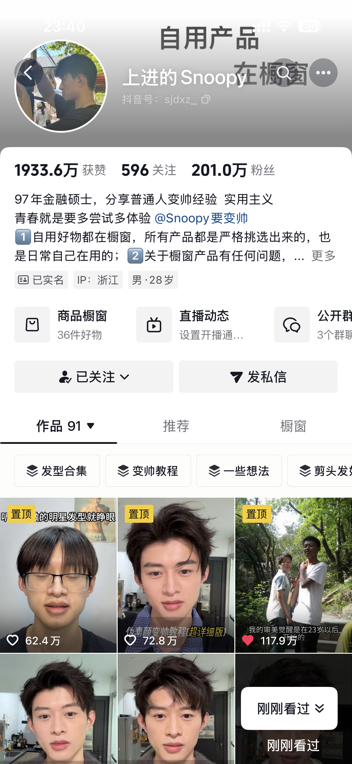 这几天刷抖音刷到这位博主(如图),教普通男生怎么变帅的,有戳到我。戳到我的不是他怎么变帅的,而是其中的两句话。