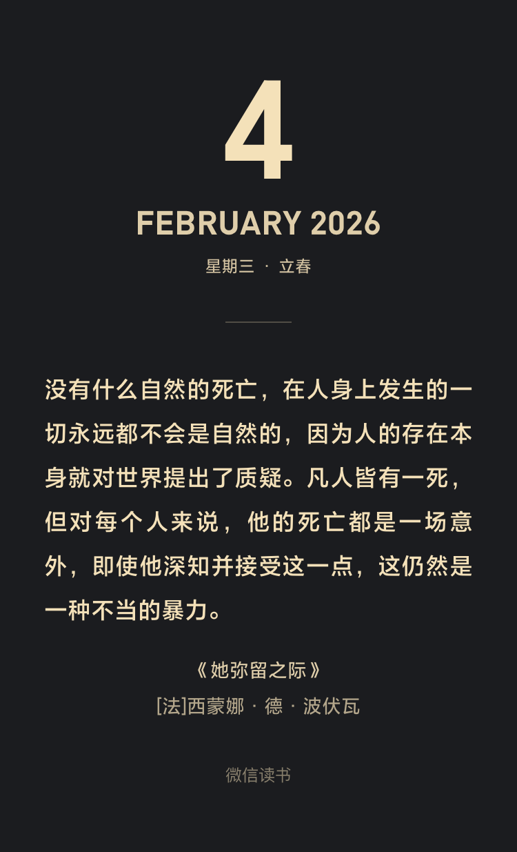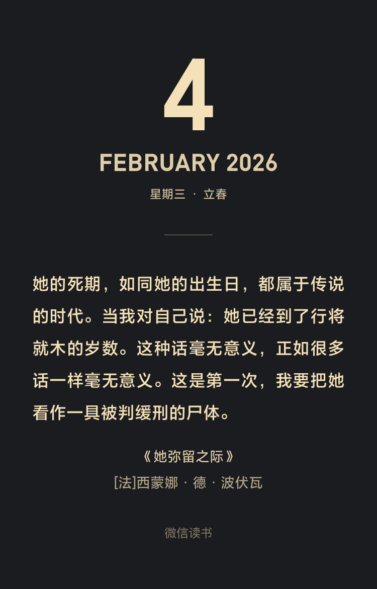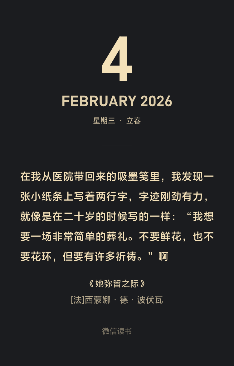 《她弥留之际》并非仅仅是一本关于母亲去世的回忆录。波伏娃以其标志性的存在主义思想和女权主义视角,将一次个人创伤转化为对人类普遍困境的深度哲学考察。波伏娃以近乎冷酷的纪实笔法,记录了母亲从患病到离世的生理细节。她剥离了死亡所有社会与宗教赋予的浪漫或神圣外壳,将其还原为一场身体彻底客体化的残酷过程。这实践了存在主义的核心信条——直面存在的“真实”,即使它充满痛苦与荒谬。死亡不是抽象的,而是具体的、物理的溃败。