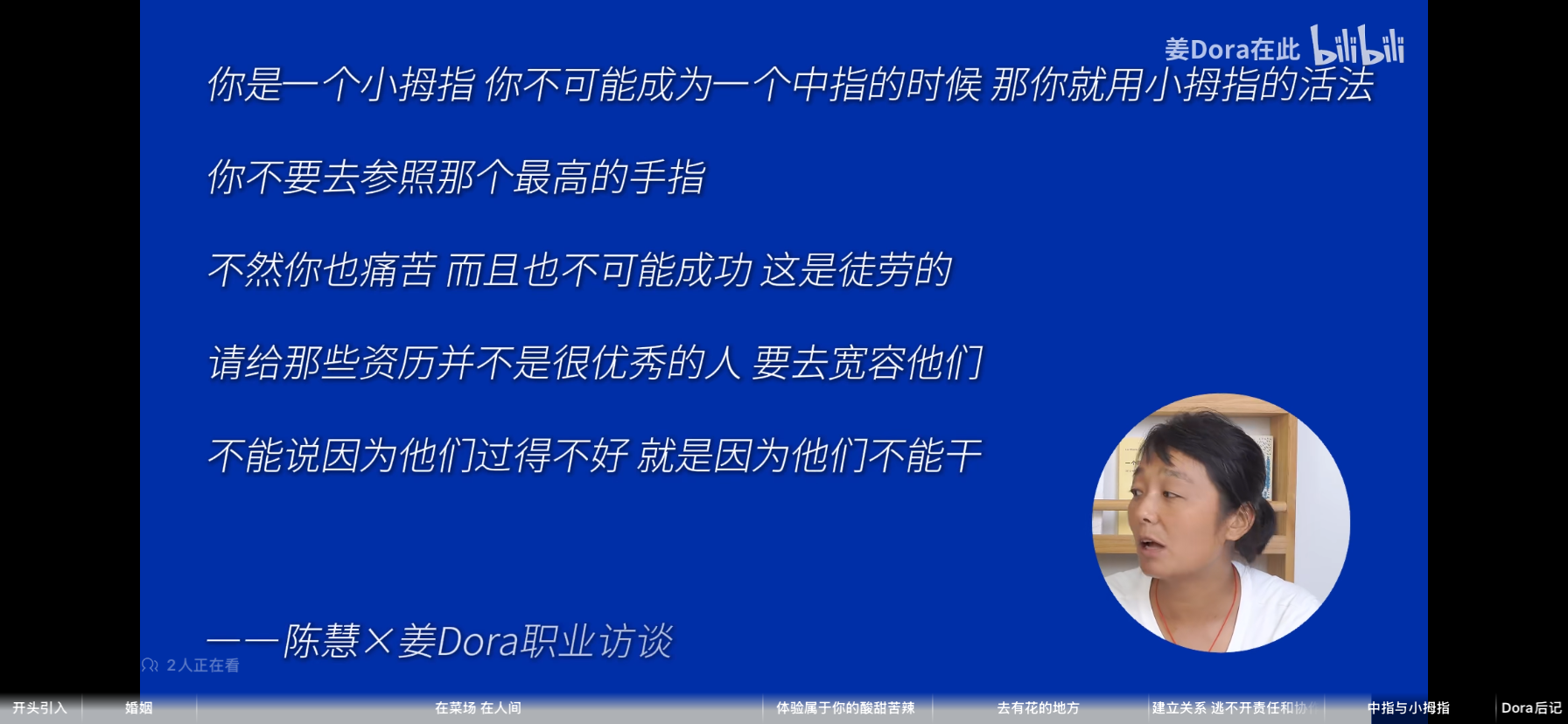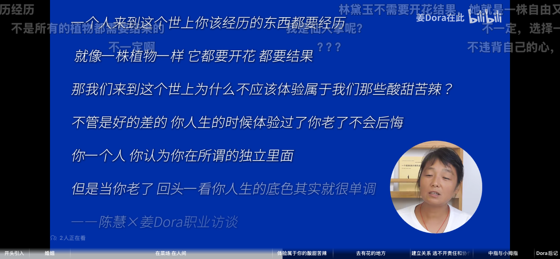 继续在看陈慧的书,于是特意找了一些关于她的采访视频,她在菜市场拉着小推车摆摊已经有二十多年的时间,从2010年开始就用电脑在QQ空间开始写日记,那是她唯一渡自己和呼吸的窗口。后面也是无意间在社区看到文学栏,她把自己的文章贴了上去,结果第二天得到了回应,对方本以为她是一位在体制内办公室的上班族,结果到菜市场找到她以后吓了一跳。非常看中她的才华,决定把当年一个可以出书的名额留给了她,新书出来之后也得到了非常好的反响,后面陆陆续续出了5本书,根据她本人描述最喜欢的一本书《去有花的地方》,那是在她45岁时决定短暂离开两点一线的生活(家里和菜市场),跟着蜂民们去几千里之外采花的生活。她很坦诚大方的说出自己一个人生活很孤独,但也很坚定孤独终老的打算,因为她在年轻的时候就已经开始生病,到现在每年都要去医院复查以及吃药,并且会告诉现在的年轻人要多谈恋爱,这样的目的是可以看清自己到底想要什么。
