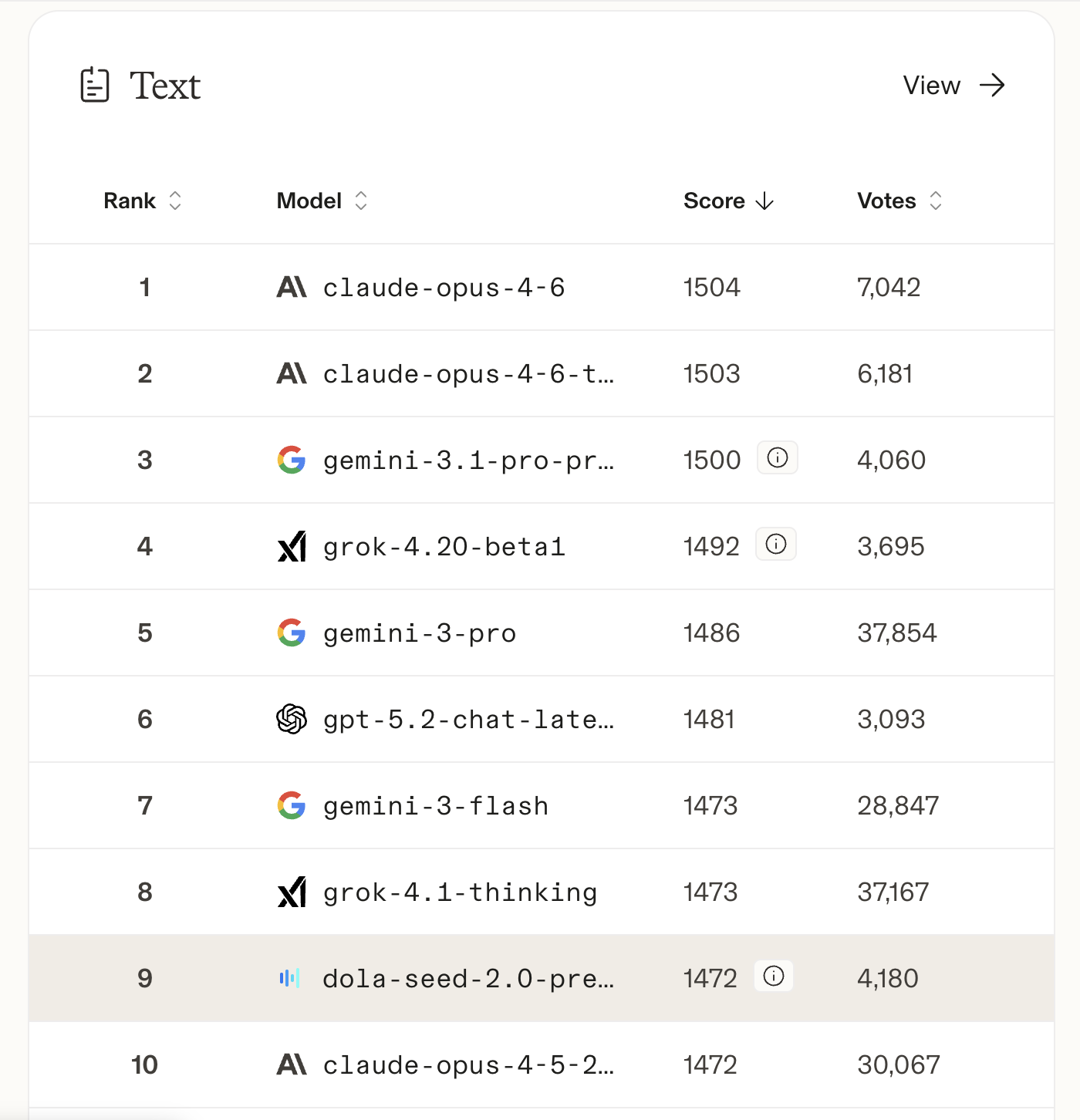 Seed2.0不仅拿下了国内综合第一,还在全球总榜里冲进了前10。其他几家新模型,GLM5、文心5、Qwen3.5、Kimi K2.5,紧跟着排在了16 17 18 19 名。