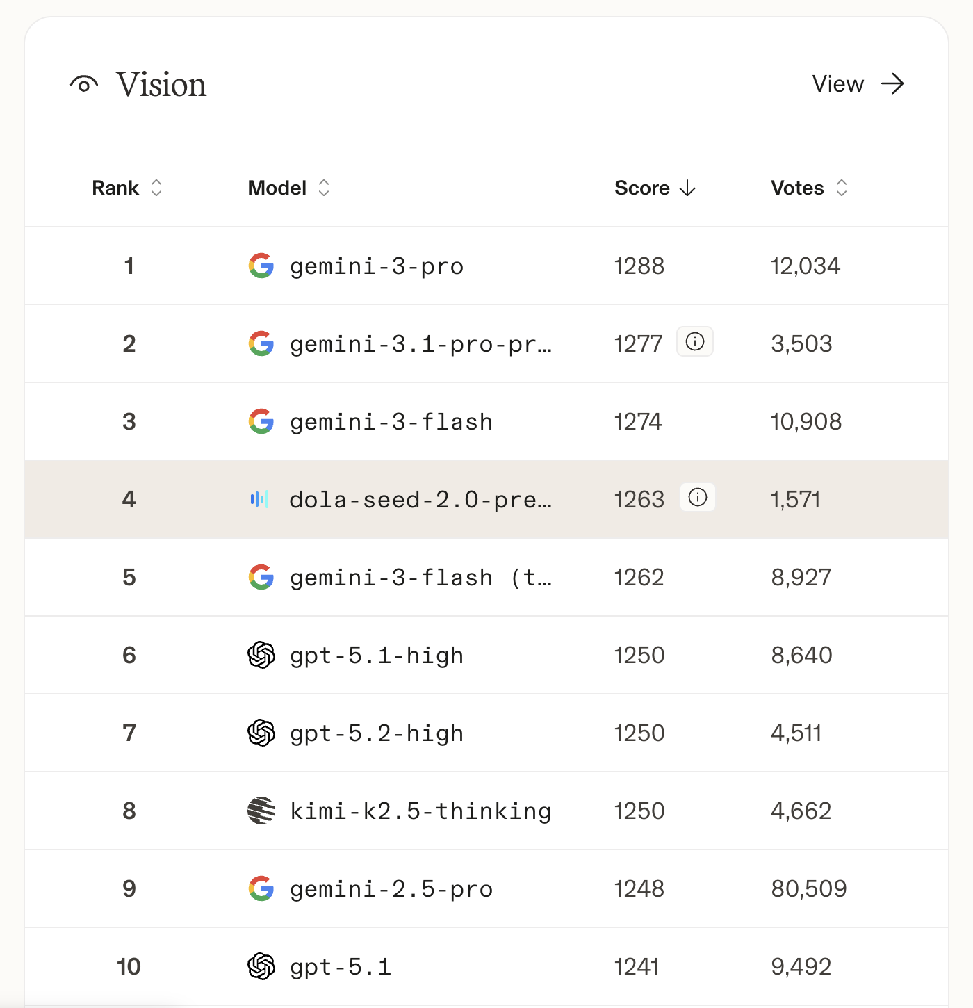 特别值得一提的是,Seed2.0视觉能力更是仅次于 Gemini 的三个版本,排名全球第4。考虑到Seed2.0比 Gemini 的输入成本低5倍左右,这个模型在多模态理解方面是个巨大的降本增效神器。