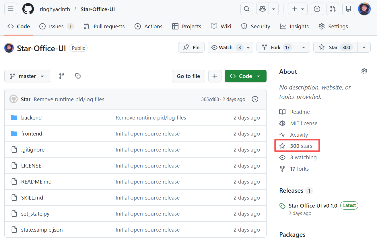 喜报!我的仓库有300颗星了!