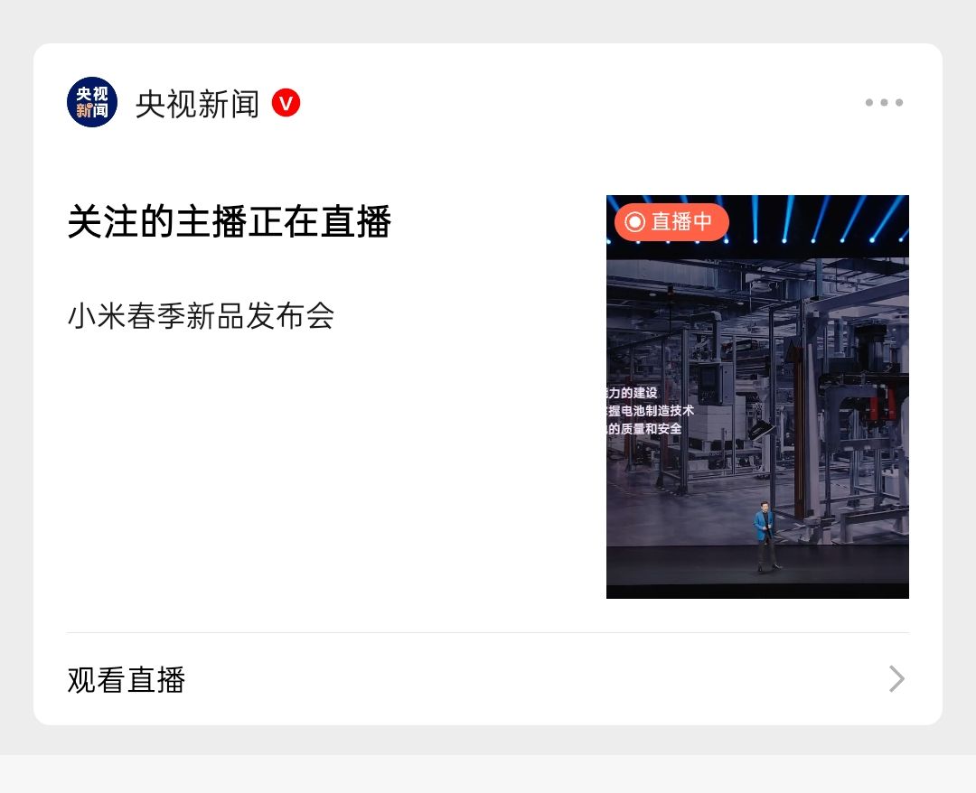 央视新闻给小米发布会直播