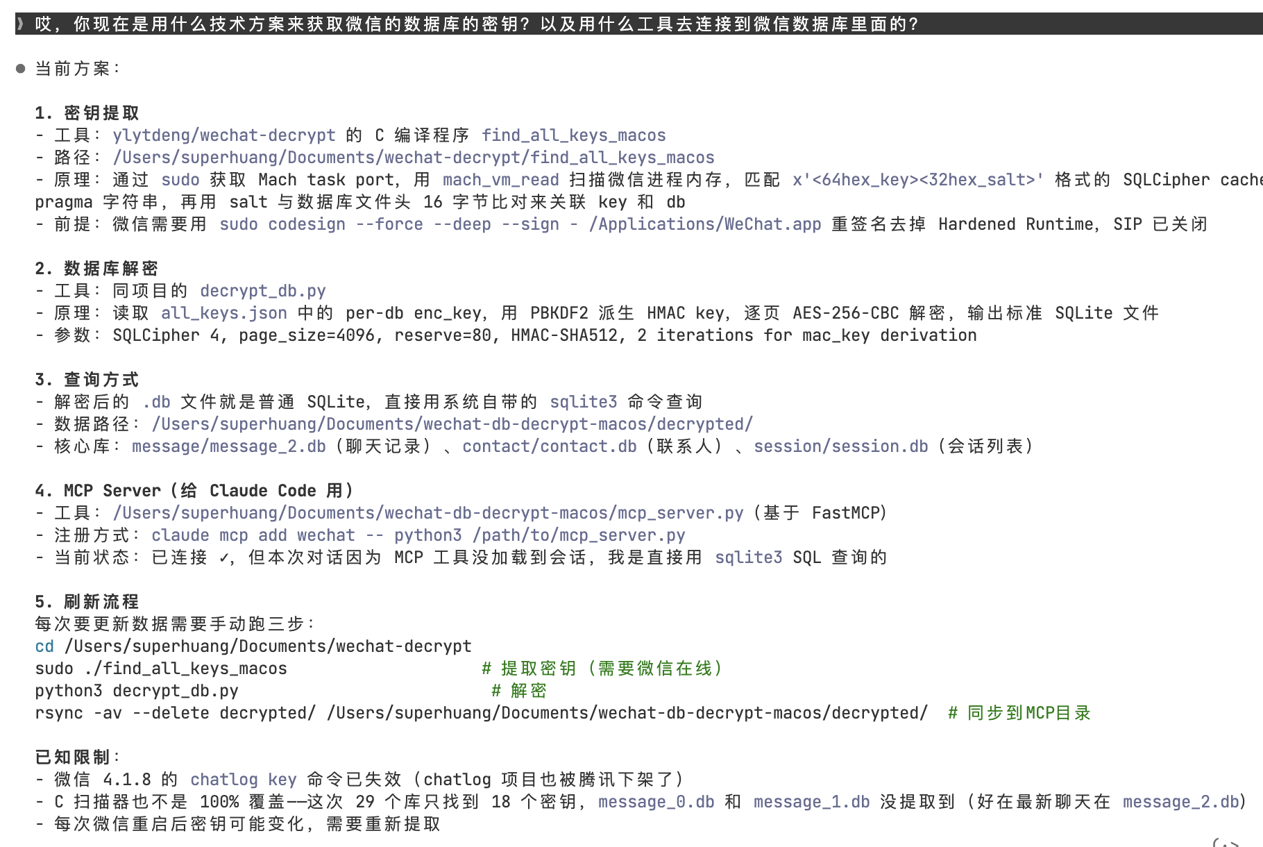 于是让CC自己找方案,搞定了微信的数据库解密、密钥提取等