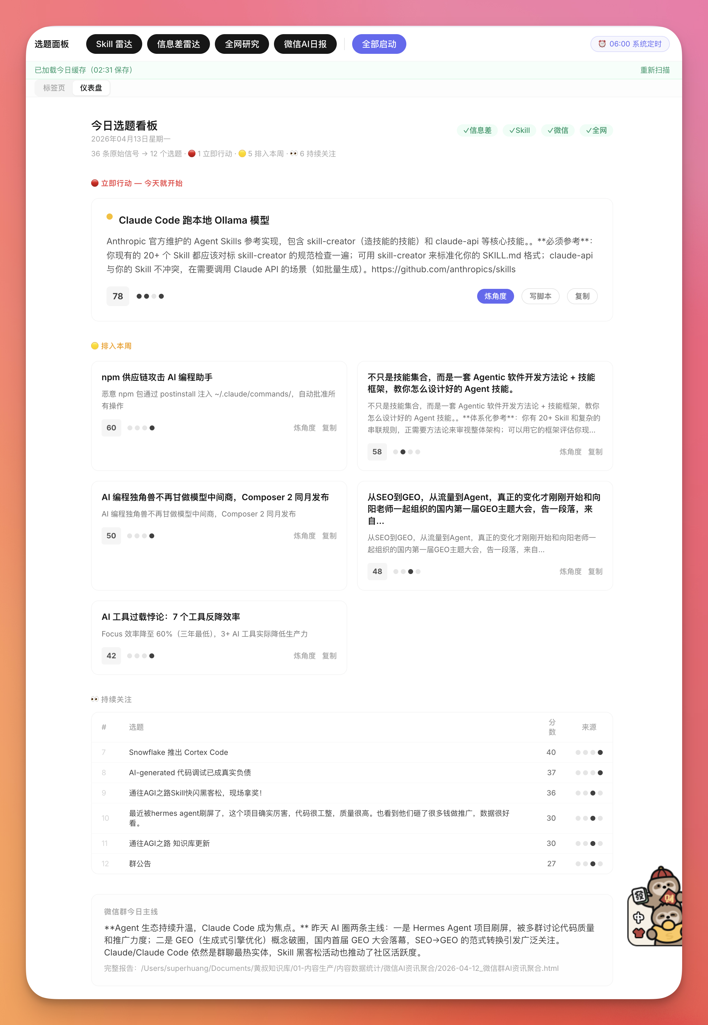 把各种内容Skill聚合到UI界面里