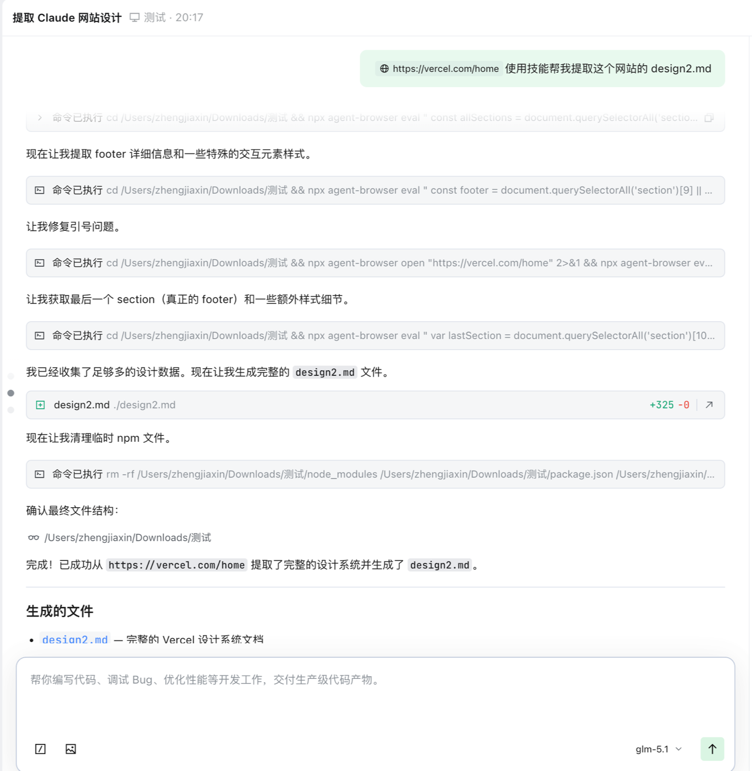 写了个技能,输入链接就可以导出一份 design.md 文档