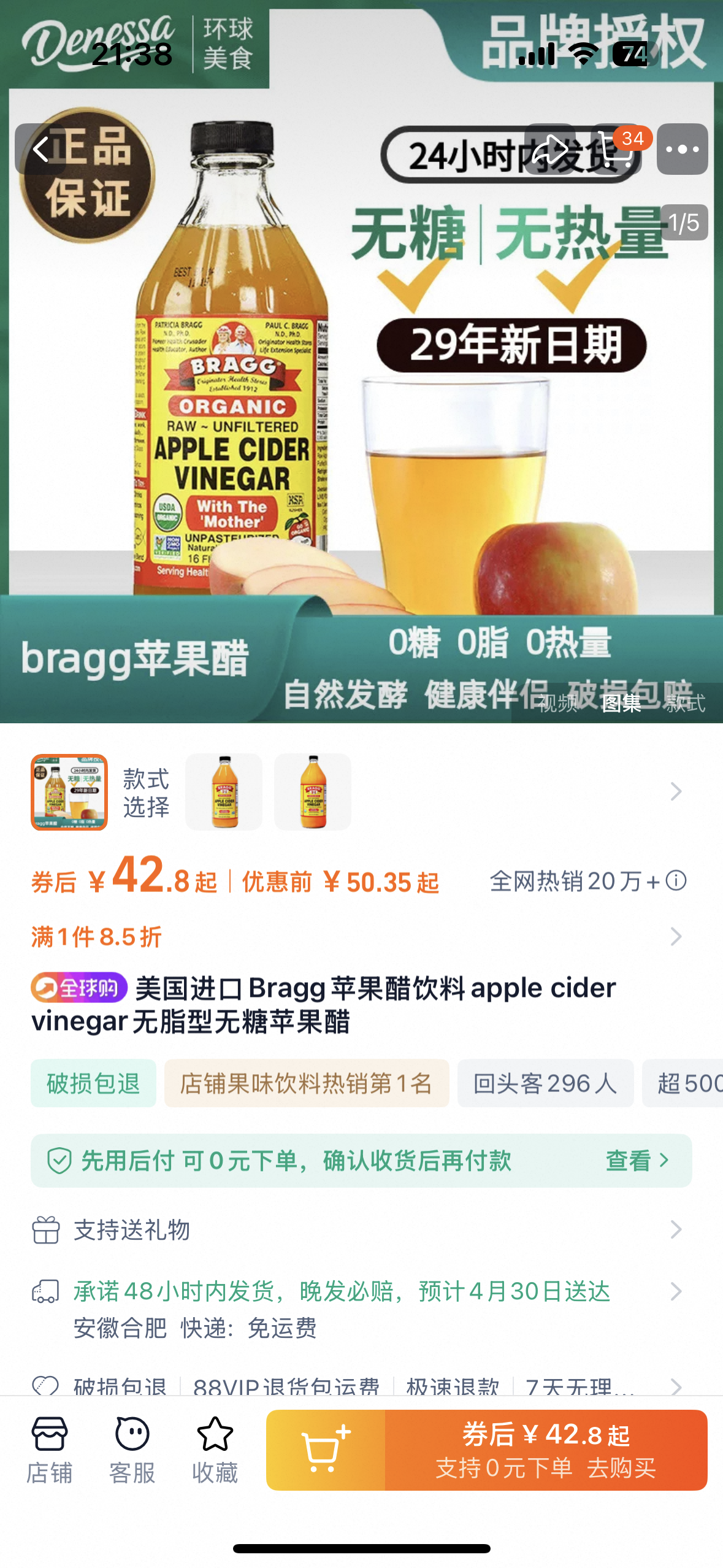 鄙人买的是这款,“RAW UNFILTERED”,老妈患有二型糖尿病,每餐进食顺序:一小勺苹果醋(尽量减少接触牙齿),然后吃蔬菜,吃肉,最后盛饭,餐后有条件可以下楼散步;苹果醋是非常健康的食品,餐前喝可以沉默相关糖分酶的活性,从而降低因为吃饭引起的血糖峰值波动;另外“RAW”的苹果醋也利于肠道健康,可谓居家吃饭之良品。