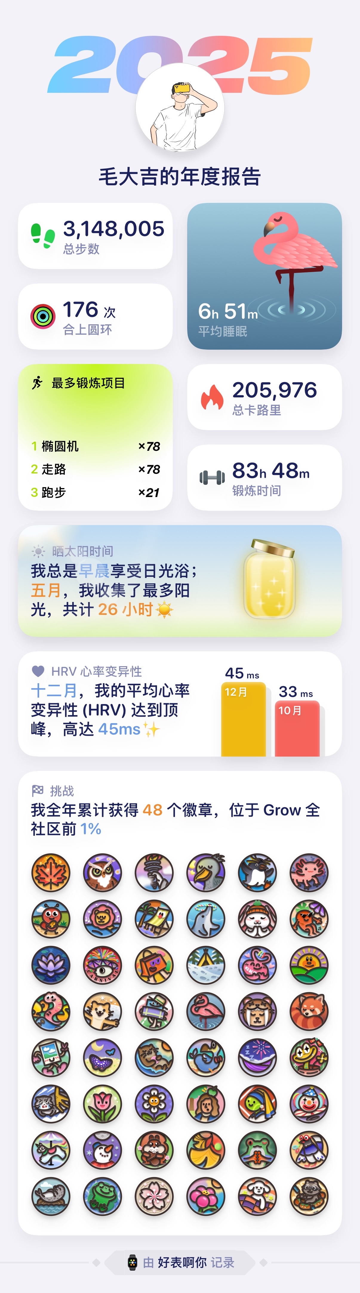 和去年比锻炼时间和睡觉时间持平诶居然~