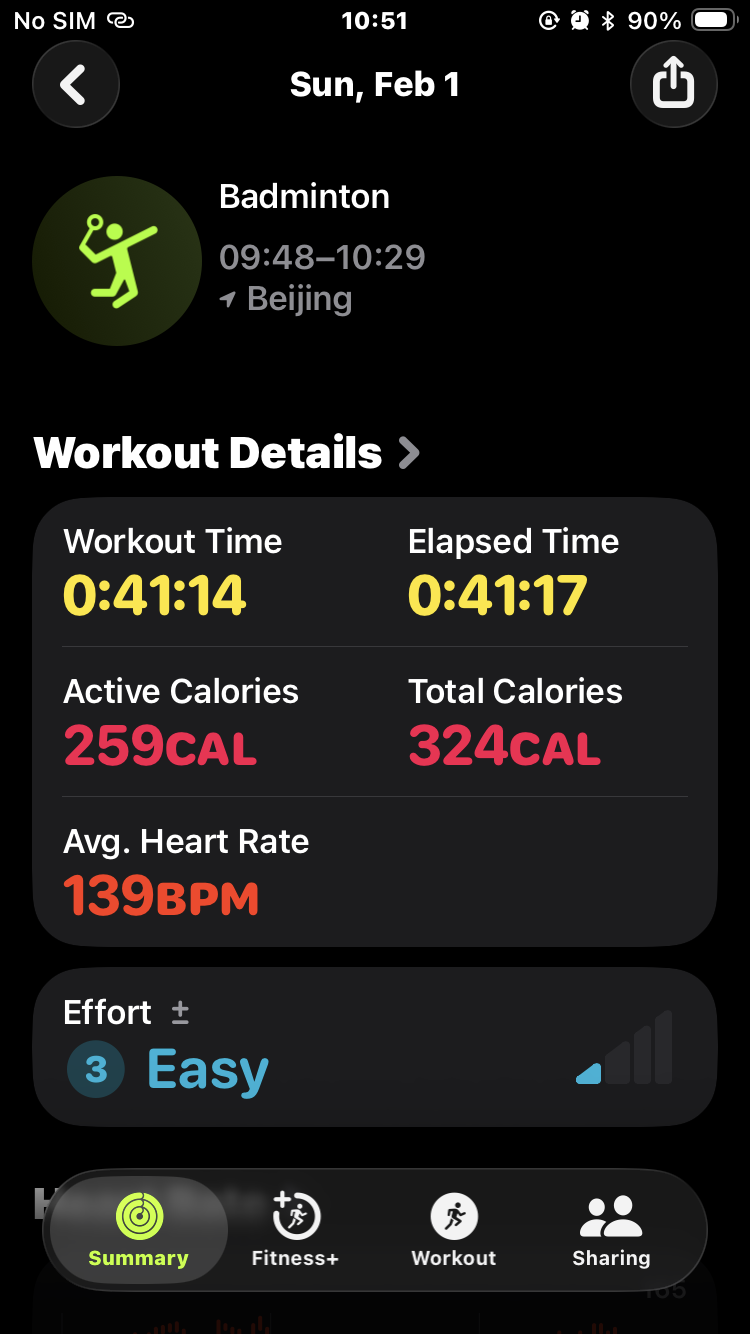 羽毛球 Zone 4 区间的心跳有三分半,比 Body Combat 的效果好!
