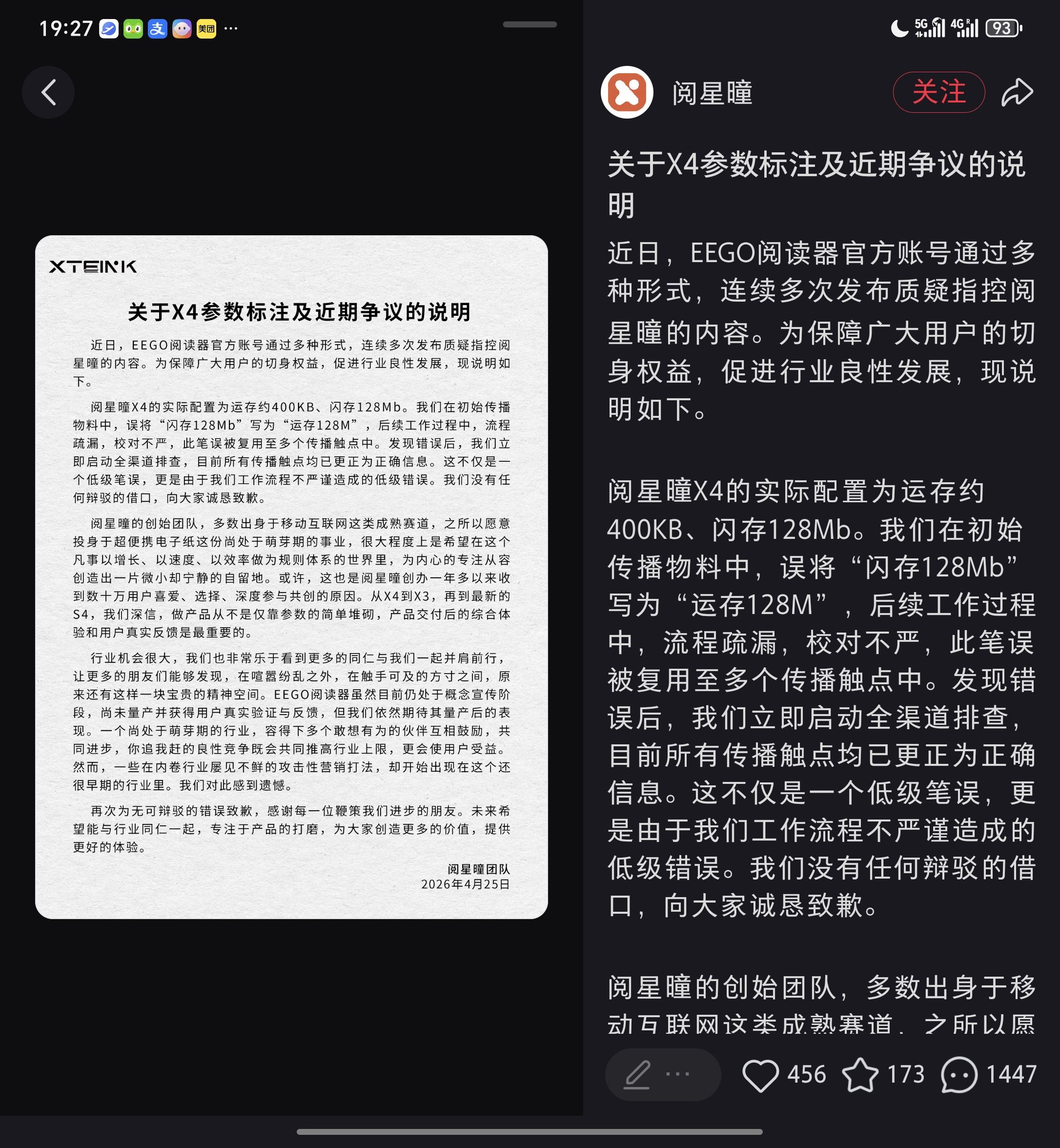 墨水屏的翻页速度,上了oxide增压和t2000快刷,单论屏幕响应/翻页速度,体感上比我的文石leaf5快了一倍左右,就不是那种需要细细体验的微妙差别,两个放一起,你就是会明显感觉leaf5翻页就是慢了一拍