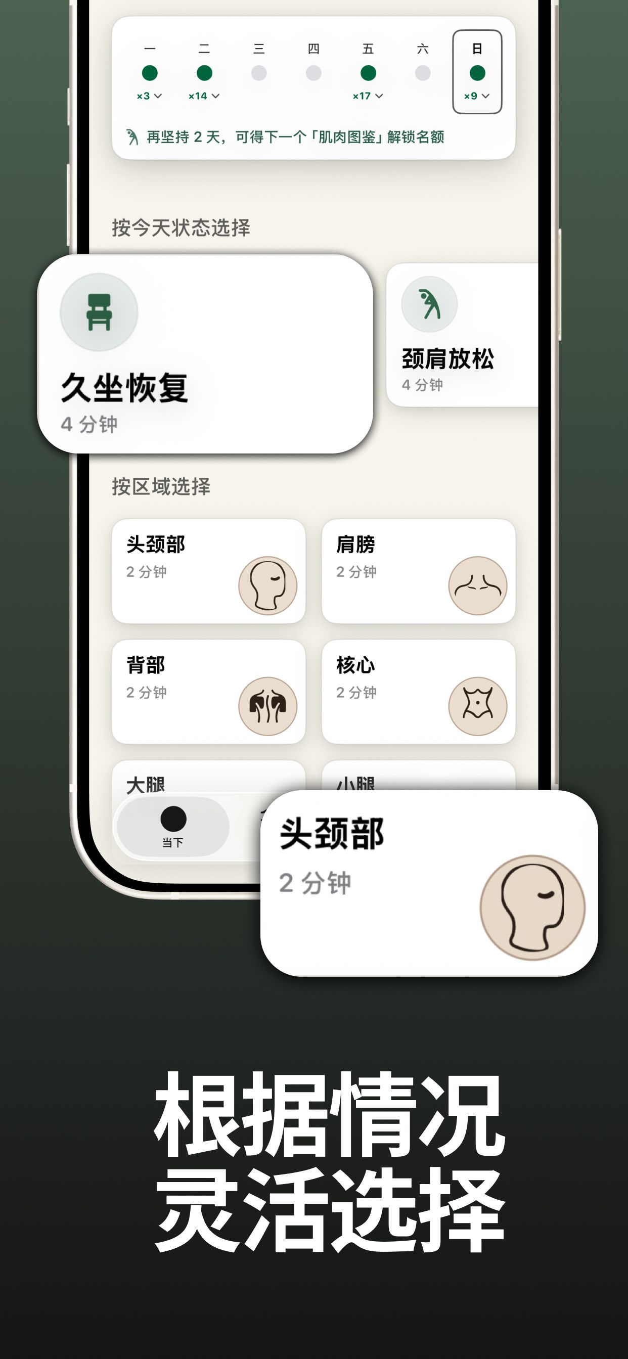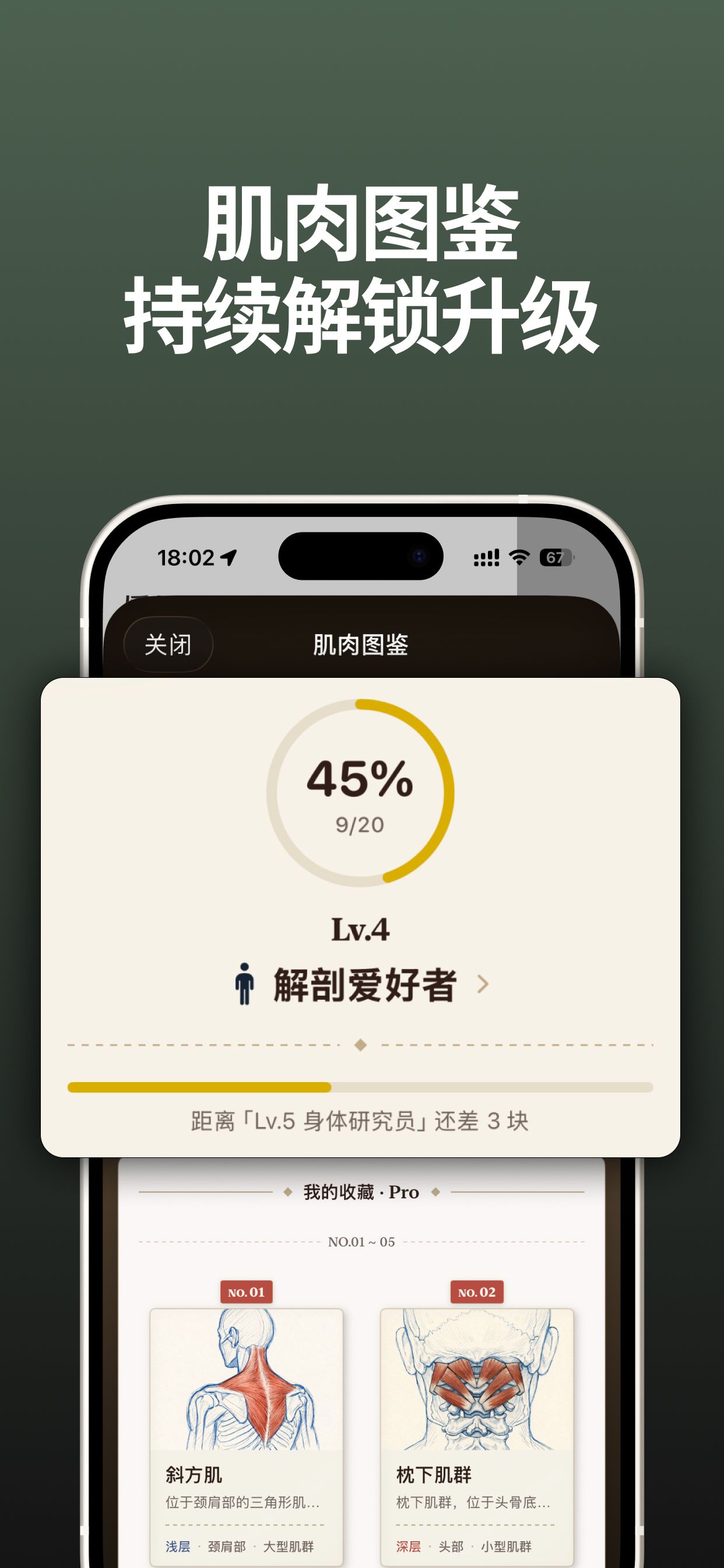 每坚持拉伸3天,就可以解锁一张手绘风格的肌肉图鉴,让你更了解自己的身体。坚持下来拉伸身体,你久坐带来的疲劳、酸痛会明显改善。
