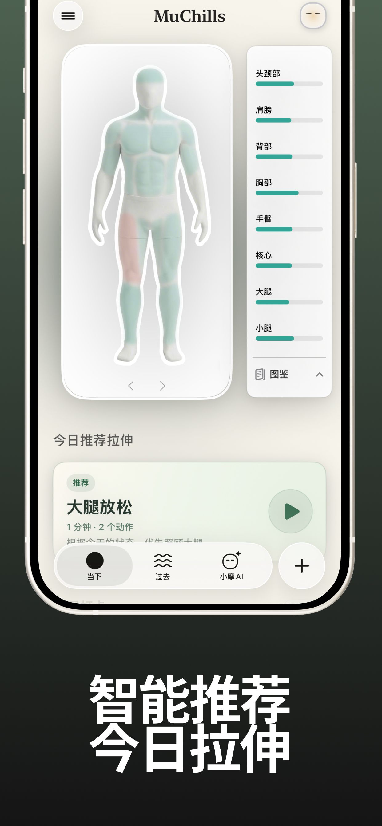 拉伸推荐功能演示,运动后可用,摩丘放松