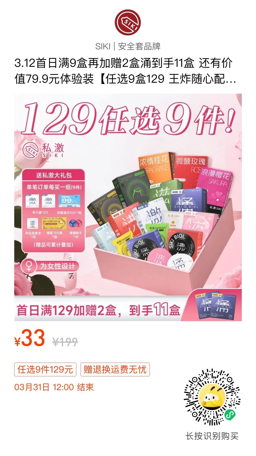 才发现有活动价,今天129有11盒。自用推荐用涌润冰,有声的可以把悄悄话情话录盒子上给对面扫码听哈哈哈 倒计时十分钟,会少两盒
