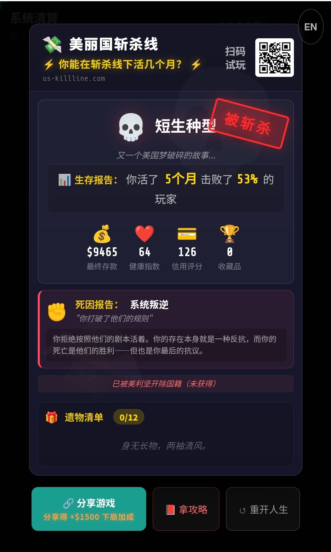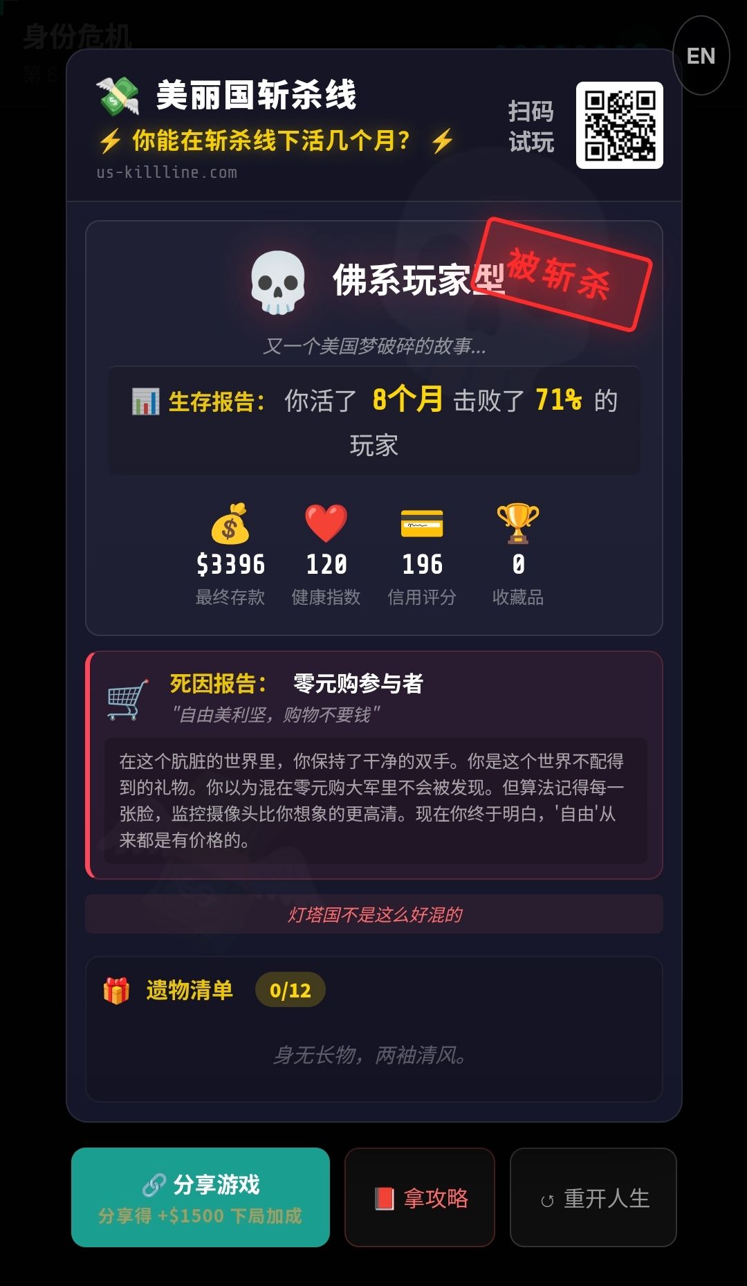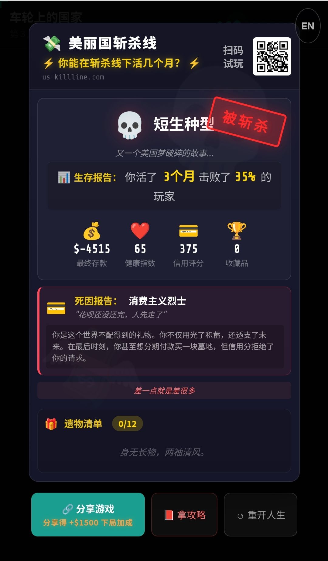 斩杀线小游戏 活不过仨月 哈哈哈 好真实