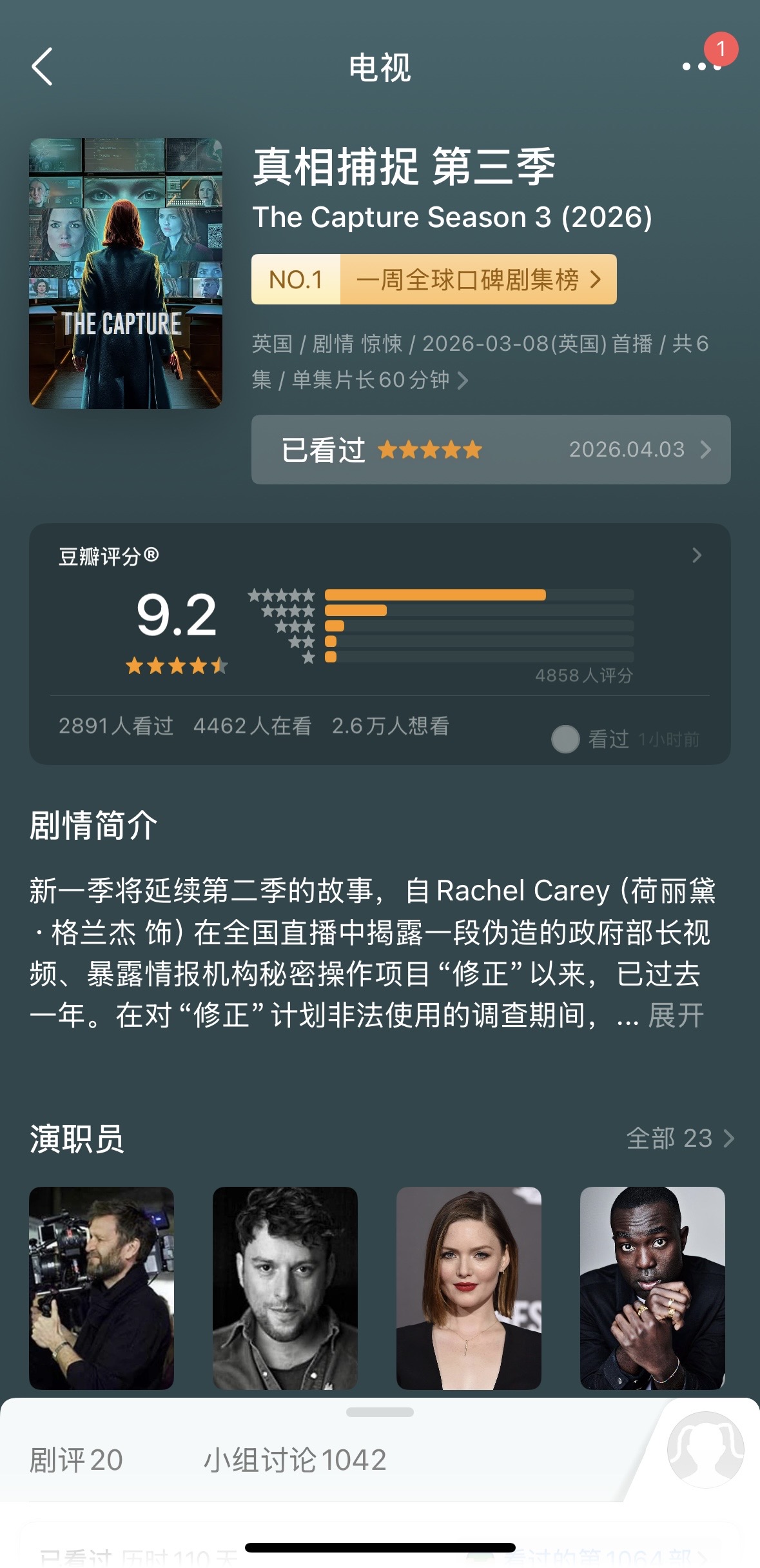 每每给朋友推荐英剧,必须是《The Capture》!