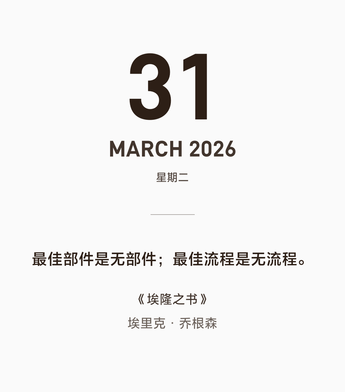 因为每多一个零件,就多一个连接点,多一个可能出错的地方,多一道组装工序。