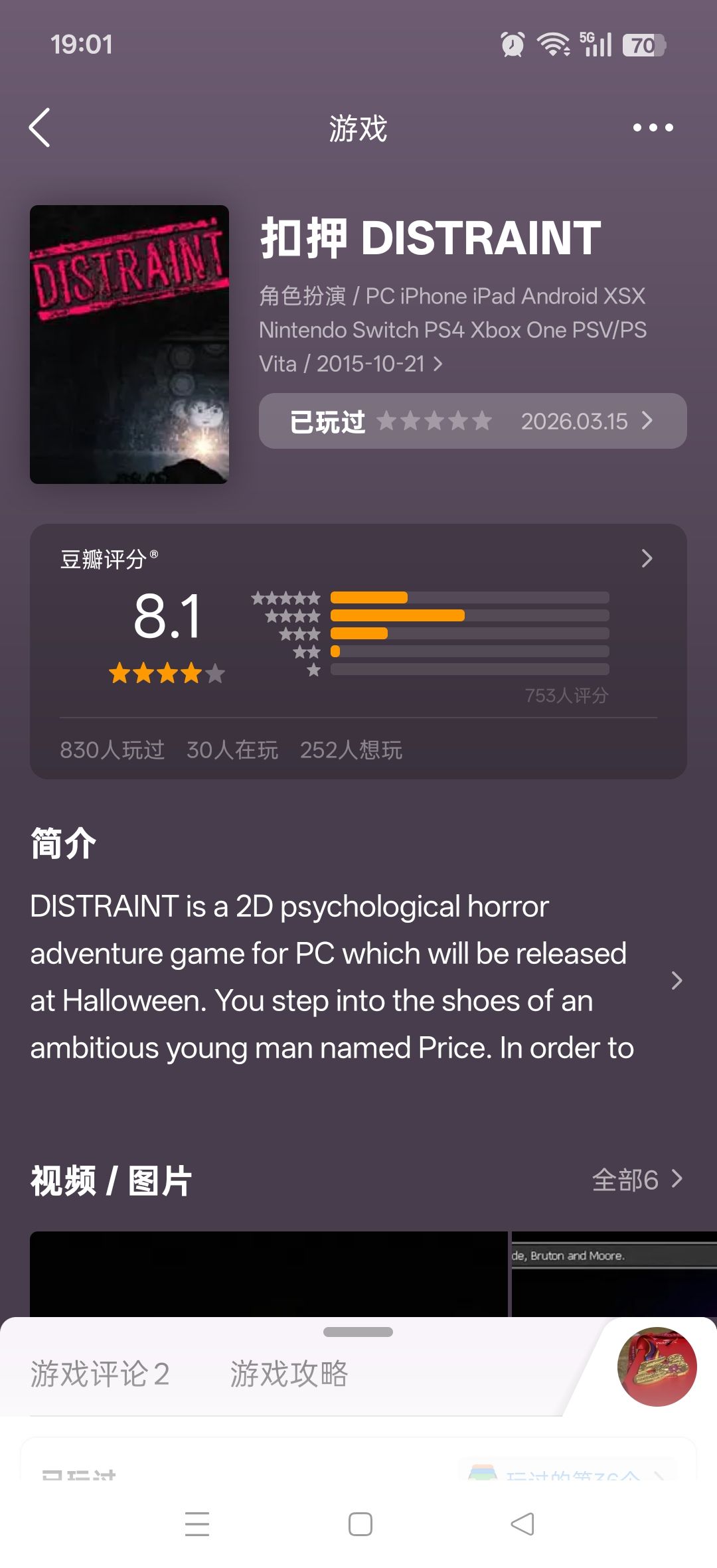 流程较短,有解谜、恐怖元素。