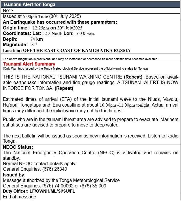 海啸预警生效