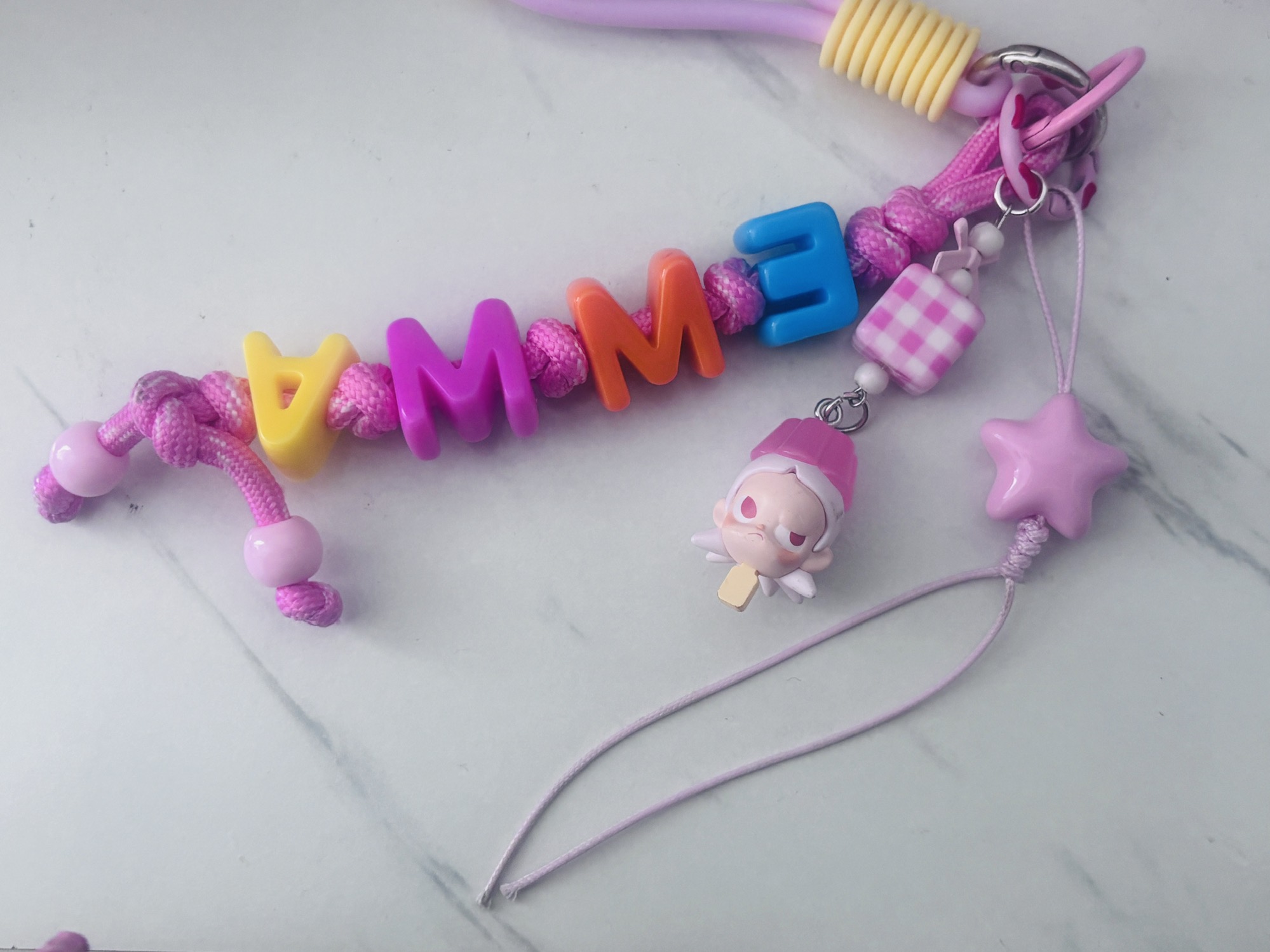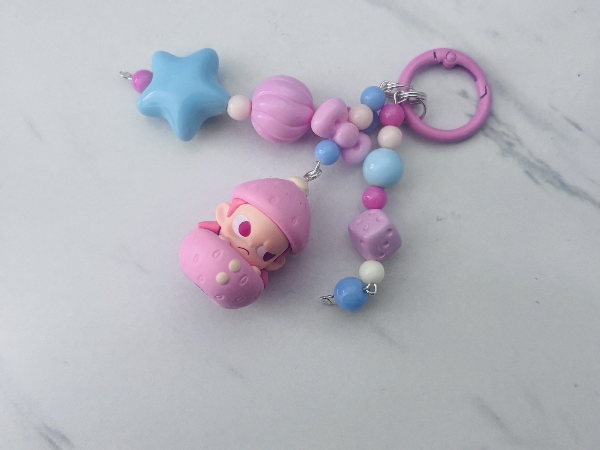 泡泡玛特的萌粒好适合做挂件,拼多多买了个十几块钱的打孔器 🔗