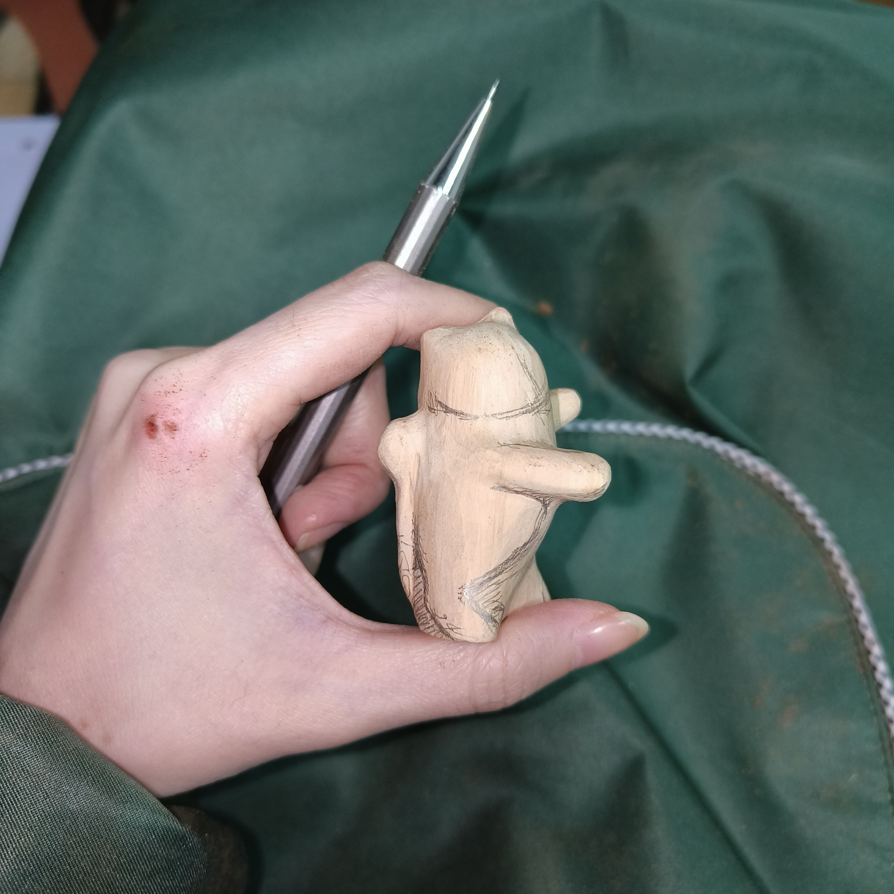 嗯对,因为磨书签出工伤了,立马挪到雕刻台远离砂纸盘,就这样记仇。