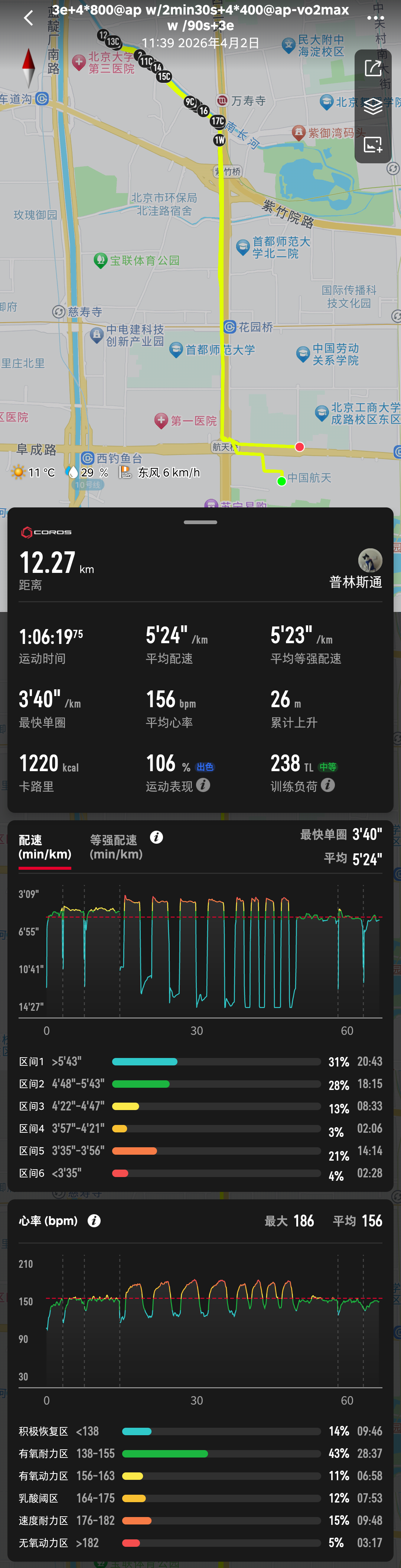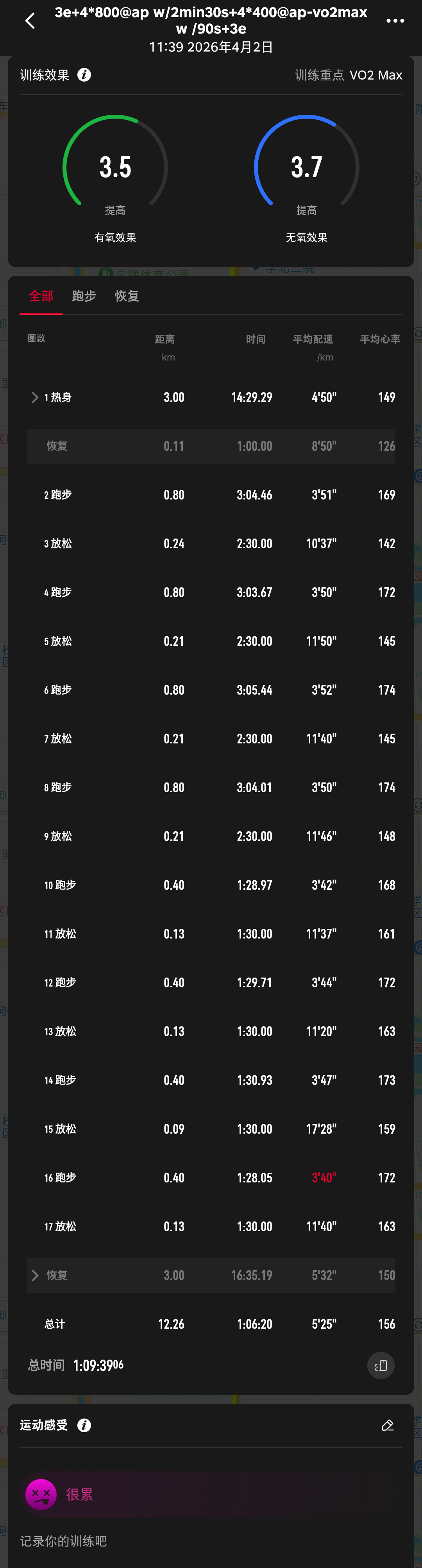 四月第一跑以强度开启,4个800和4个400