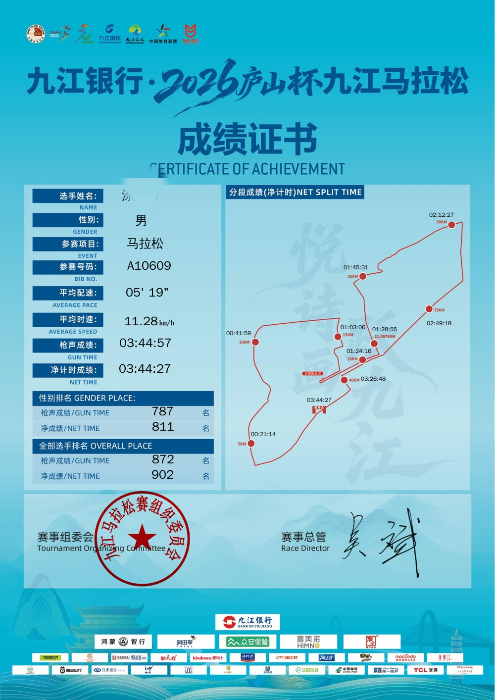 九江马拉松跑完之后自己当时就看了下手表数据,42.195公里差不多有八公里是走路,跟赛前预想的不太一样。突然觉得跑得慢也有另一番景象和体验,人生不也是这样嘛,起起伏伏才是常态,哪有一帆风顺的!